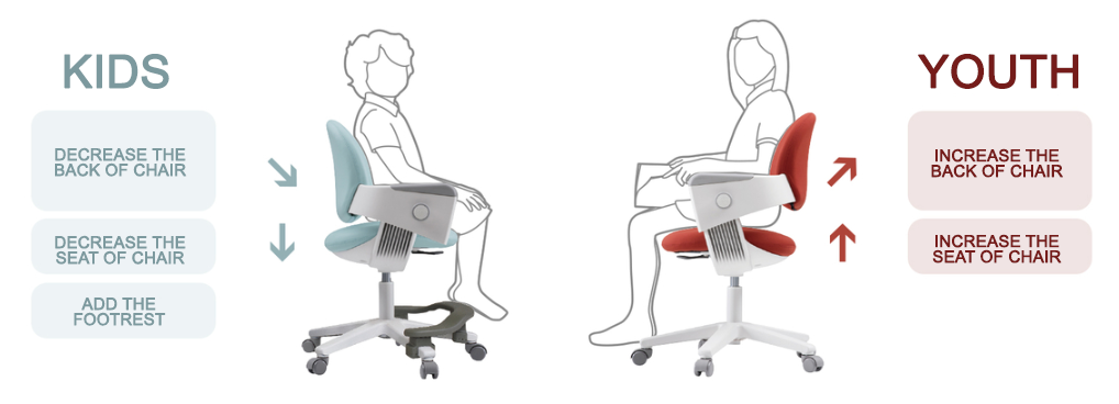 It is a glowing chair that can adjust the height of the backboard and depth of the seat to suit childre's growth.