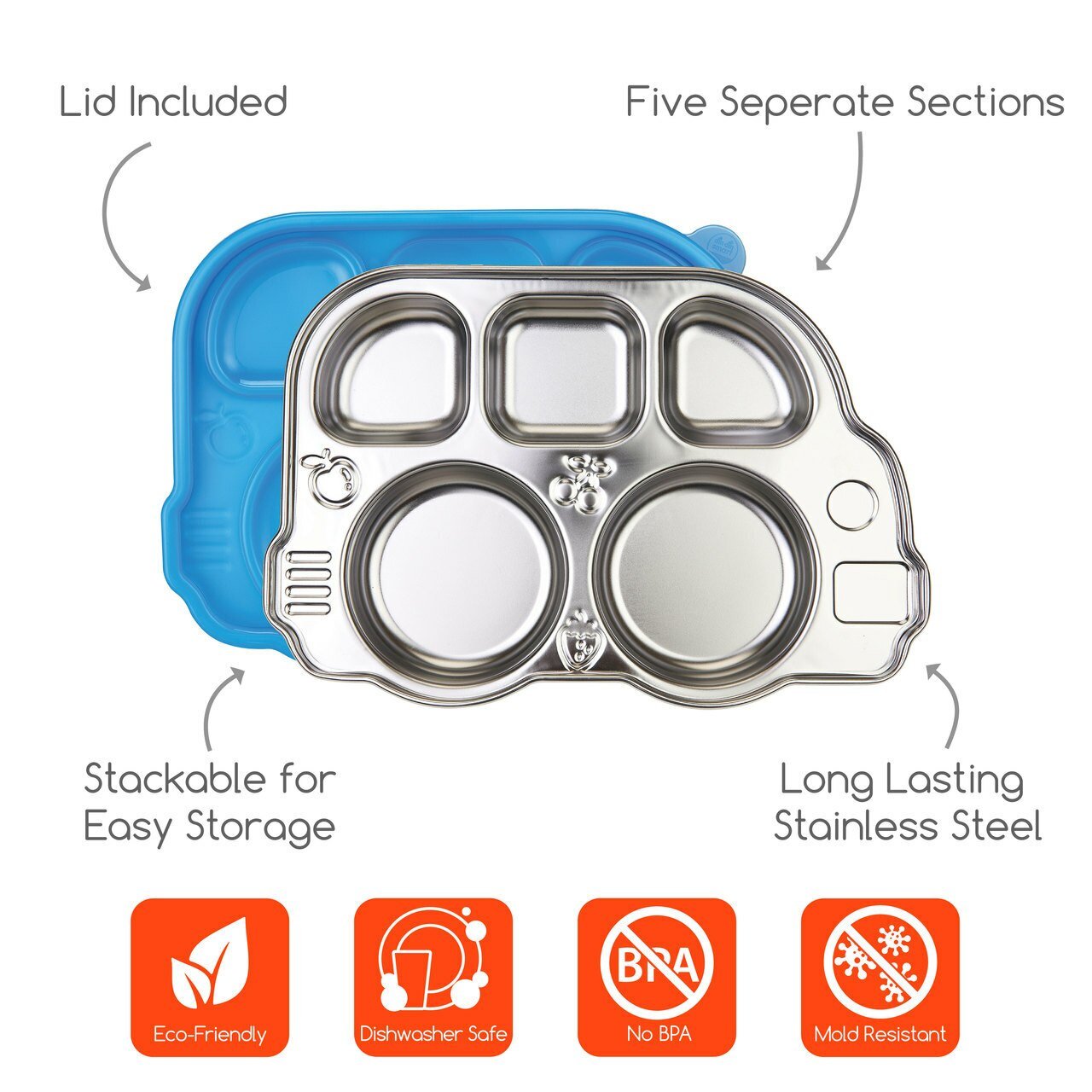 - BUILD HEALTHY EATING HABITS EVEN FOR THE PICKIEST EATERS - Our kid friendly design & colorful lids make meal & snack times fun. This separated plate has 5 compartments making food introduction easier and allowing picky eaters to keep food from touching.