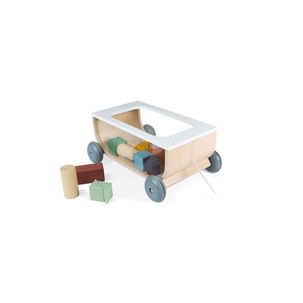 This wooden awakening cart is perfect for children who can walk, they can take it everywhere from their first steps. This cart also contains 17 wooden cubes that will allow your child to develop his dexterity and the coordination of his movements thanks to the many shapes. The sides of the cart are transparent to reveal the cubes, and the wheels are silent thanks to a rubber part. This wooden toy is part of the Sweet Cocoon collection, a delicate colors range, inspired by current trends to gently accompany your child's first learnings!Product info