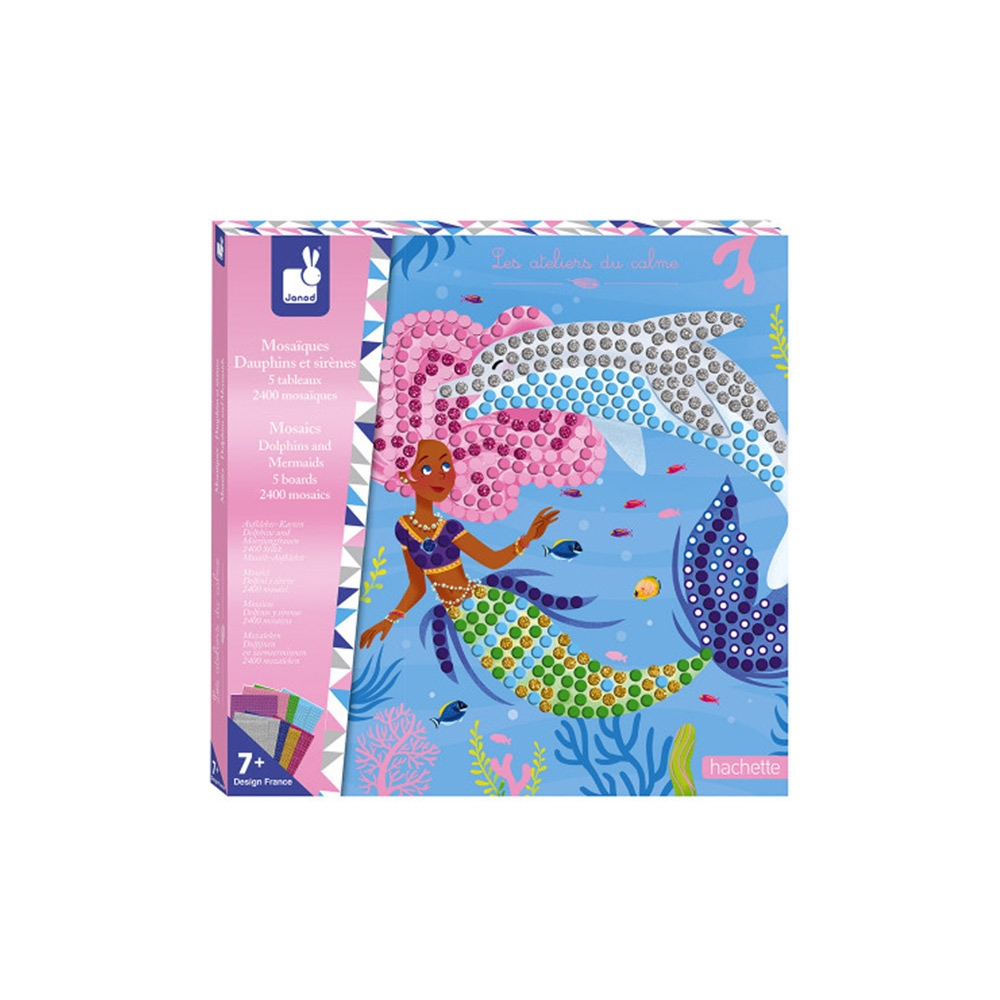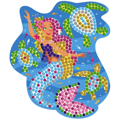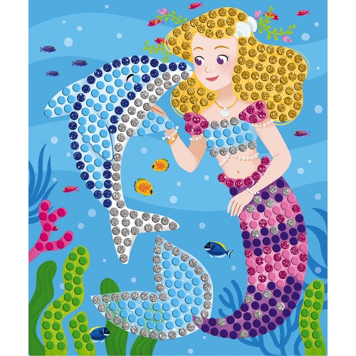 This creative kit allows you to create beautiful colorful pictures on the theme of dolphins and mermaids. To do so, simply stick the different mosaics on each card. This kit contains: 5 boards to decorate, 2400 foam mosaics of 10 different colors, 5 adhesive fasteners and 1 booklet with instructions and models. This creative kit allows you to create beautiful colorful pictures on the theme of dolphins and mermaids. To do so, simply stick the different mosaics on each card. This kit contains: 5 boards to decorate, 2400 foam mosaics of 10 different colors, 5 adhesive fasteners and 1 booklet with instructions and models.Dimensions: 26 x 2 x 26 cm (10.2 x 0.8 x 10.2") Material(s): Cardboard, foam, plastic