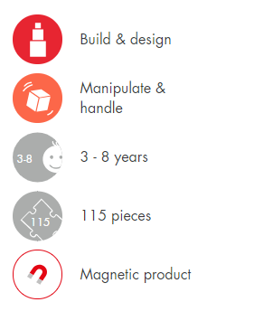 Gender: Mixed Accessories: 115 magnets + 4 cards Material: Cardboard Dimensions: 19 x 4 x 26 cm |