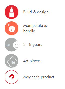 Once the “book” is opened, the aim is to make on the stage the same scene as indicated on the card thanks to the magnets.Gender:Mixed