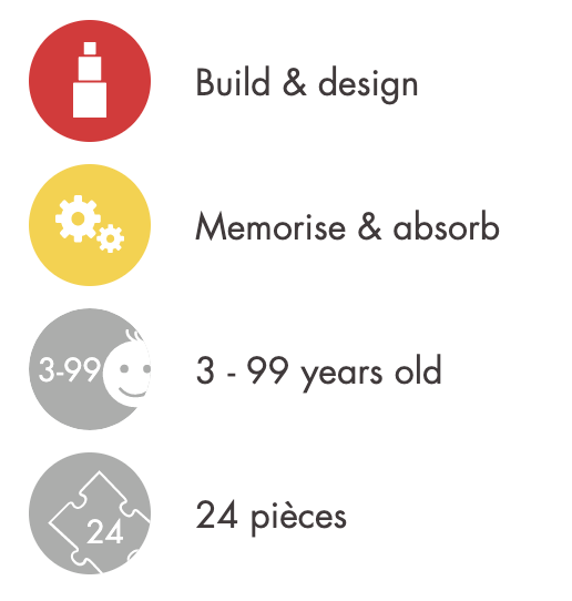 2 toys in 1: a 24-piece puzzle with a farm theme in a lovely box to carry everywhere. The size of the pieces is suitable for small hands and makes it easier for little ones to make the puzzle. Once the puzzle is complete, children will enjoy finding the 29 illustrations that are hidden in the puzzle (as indicated on the bottom of it). Closed box with handle and rivet.