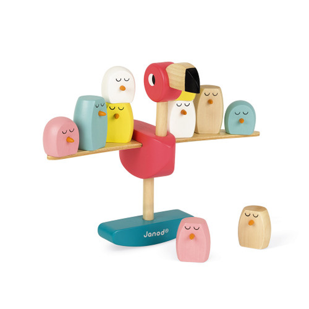 Who doesn’t love this large family of flamingos? This lovely balance game - made of solid wood (cherry wood for the coloured pieces and beech wood for the natural pieces) - will provide hours of family fun! It is suitable for children aged 3 years and up, and is easy to understand: simply correctly place the 10 baby flamingos on the pink flamingo’s removable wings, without making them fall. Whoever places the baby flamingo that makes the big bird fall over, loses the game! This game will allow your child to develop their motor and logic skills, whilst discovering the world of multiplayer games, in turn, allowing them to develop many of the faculties that are essential to life in society, such as managing emotions or cooperation. But, let's face it, it’s easier to be a good loser when playing such a cute game! Decorated with water-based paint.