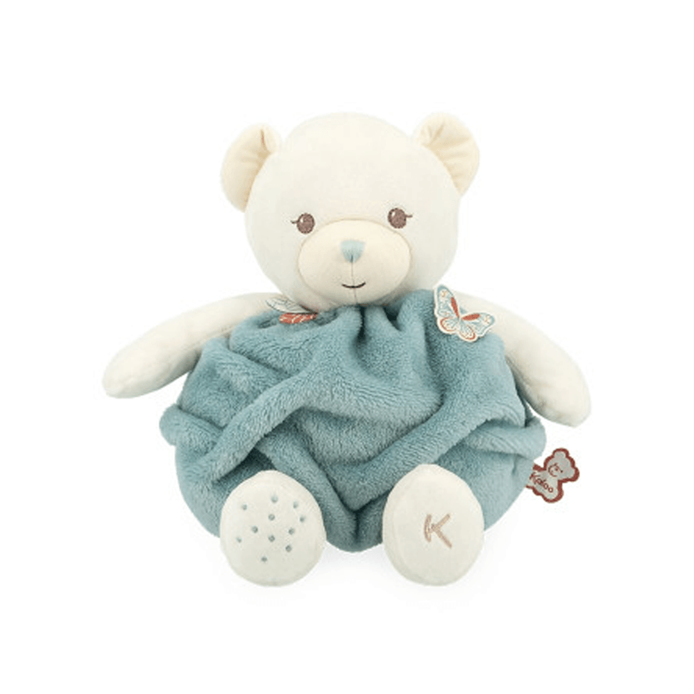 Little Buble of Love Bear, 23cm/30cm, comes in a new green colour and a new incredibly soft and fluffy material. Its adorable shape, with arms and legs, helps baby grip it. Its little face and friendly smile make it an ideal companion for your child. The printed feathers and butterfly delicately placed on its arm give it a touch of poetry and lightness. Accompanied by its friend the butterfly, it is ready for precious moments with baby. Presented in an attractive gift box that can be customised with a message in the space available under the lid. Suitable for newborns and upwards. Machine washable.