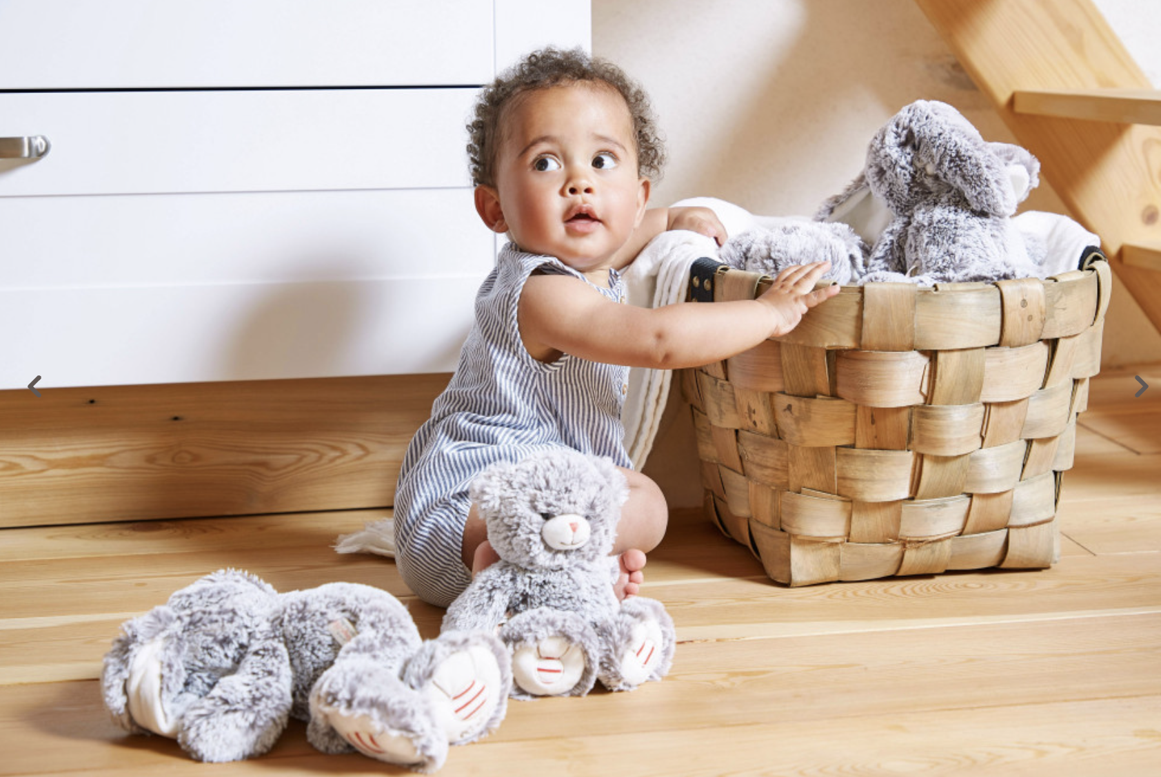 The small elephant Noa grey prestige 24 cm will be the ideal partner to be near baby. Its small size allows to take it everywhere. The child will be able to squeeze this cute animal, full of wisdom and intelligence. Baby will enjoy playing with his trunk and his big soft ears! Its soft body and its long fur specially chosen for its exceptional softness invite the best cuddles. Its embroidered "marinière" feet and a Kaloo red patch sign each product of the range and allow to identify them immediately. Machine washable. From birth.