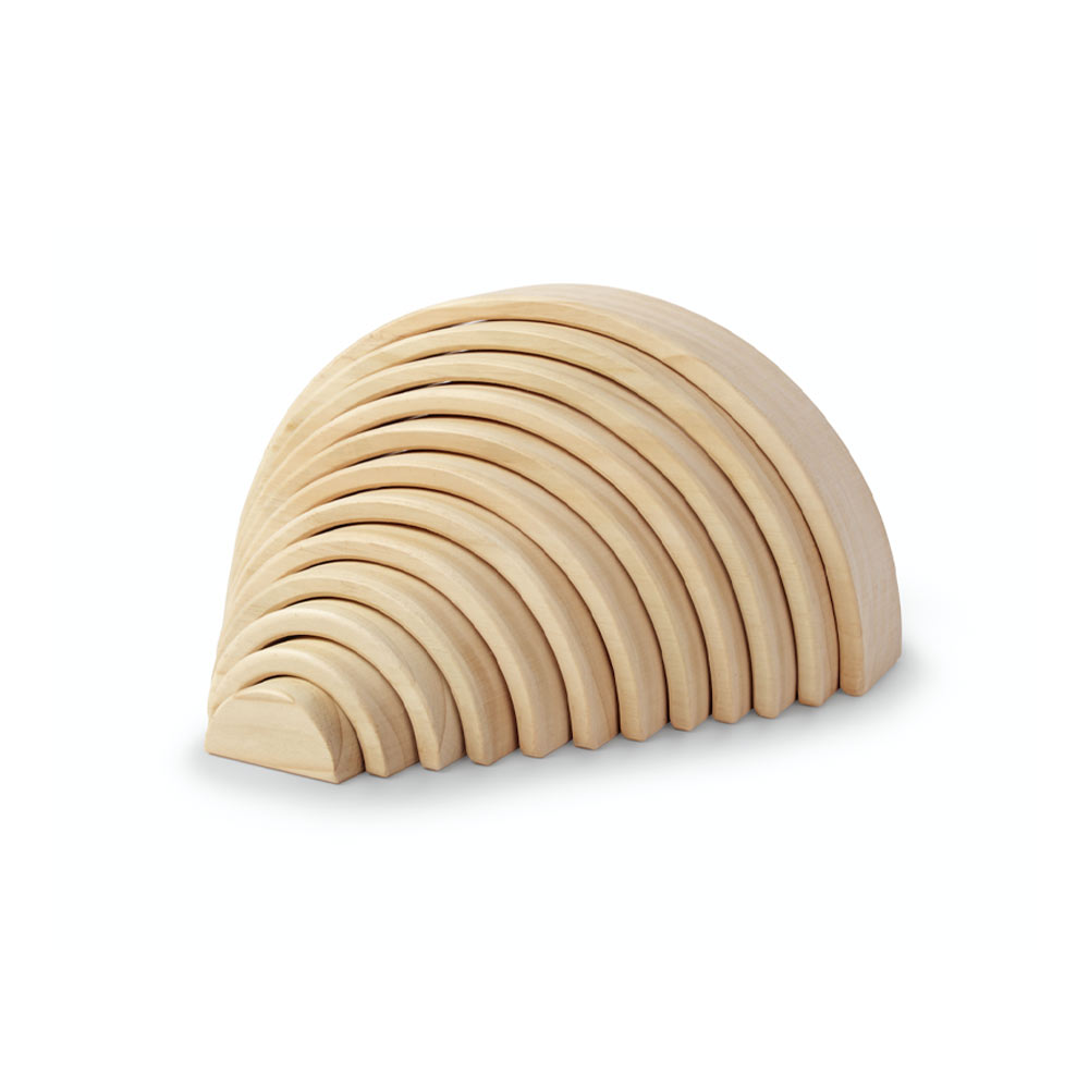 Each arch is handmade, so if one doesn't seem to fit quite right - try rotating it! Crafted using FSC-certified pinewood and soft, water-based stains, the arches may have small, unique markings and patterns that are a result of their natural wooden composition. Available in natural pinewood or rainbow and suitable for ages 12 months and up.