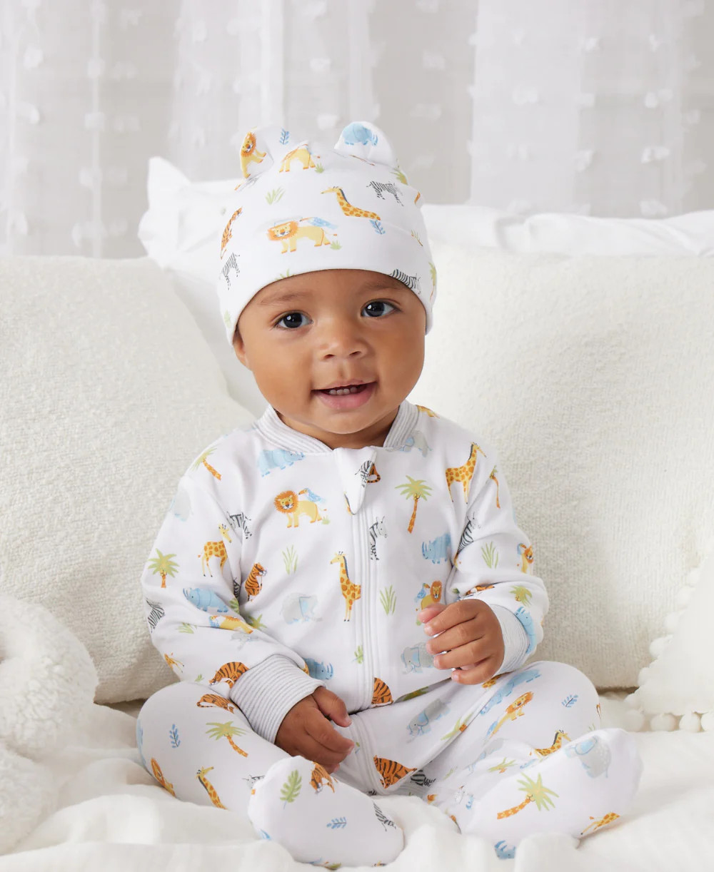 Playfully patterned with our Tropical Jungle print, our cozy, zippered footie for your precious baby is made from the softest Pima cotton for ultimate comfort.