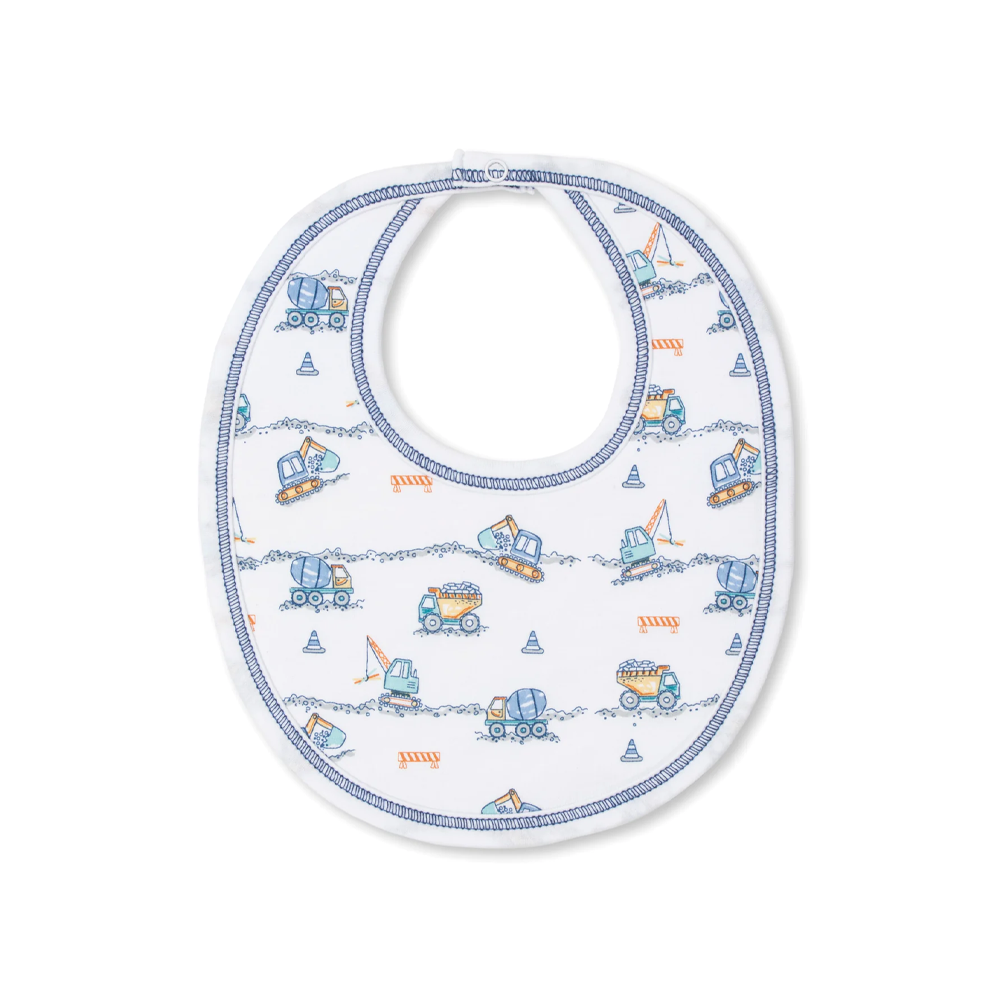 - Catch baby's mealtime messes with our playfully printed construction junction bib. Made from the softest Pima cotton for ultimate comfort.