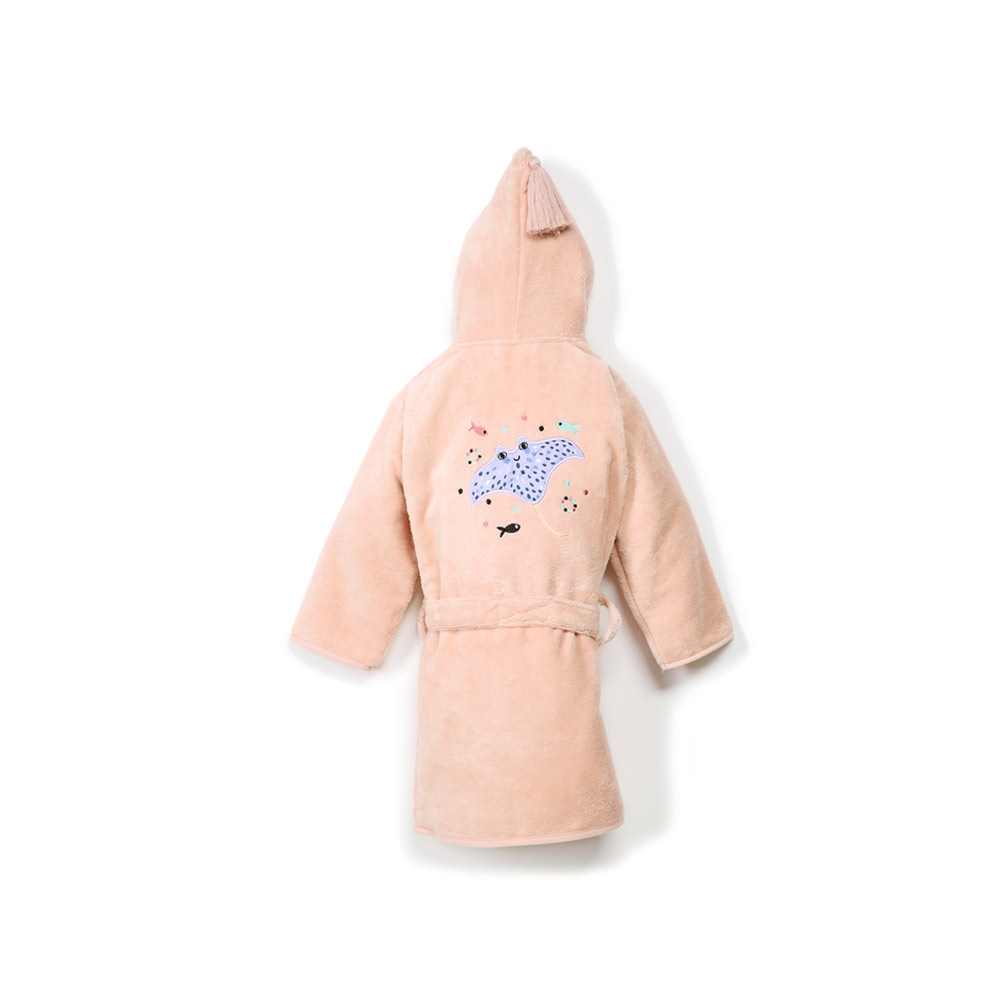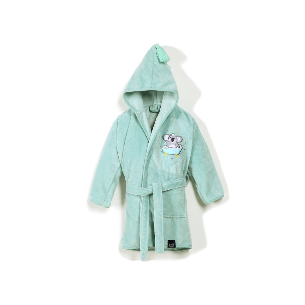 The robe has a practical, deep cap finished with a soft tassel, a colourful application with one of the most popular characters of La Millou and a useful pocket.