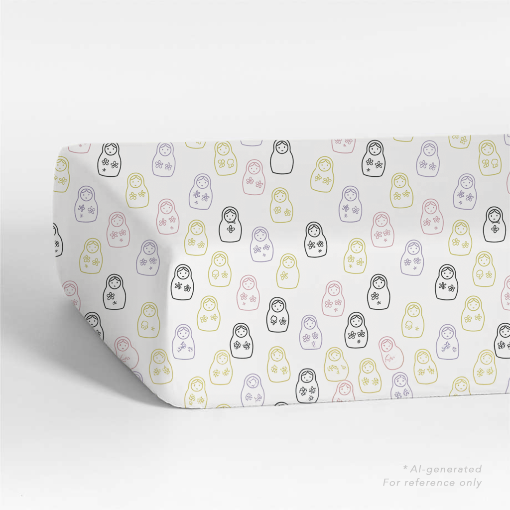 These tiny nesting dolls combine some of our favourite colour palettes. Pair this crib skirt with our Astrid sheets in lilac or mix it up with any of our fern, pink or grey sheets.