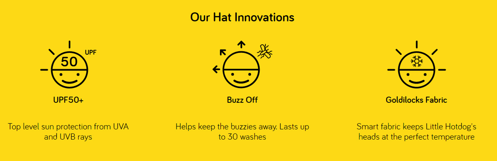 Little Hotdog Watson hats are safety tested and produced ethically.