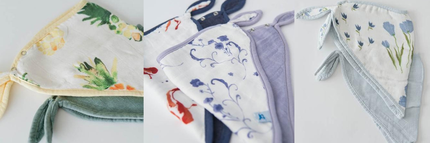Complete with two unique, hand-painted prints in one, our deluxe bib set is designed for all day wear and compliments baby’s outfit — and outfit changes! Crafted in our extra soft deluxe muslin that’s super gentle on baby’s skin when catching drool + spills.