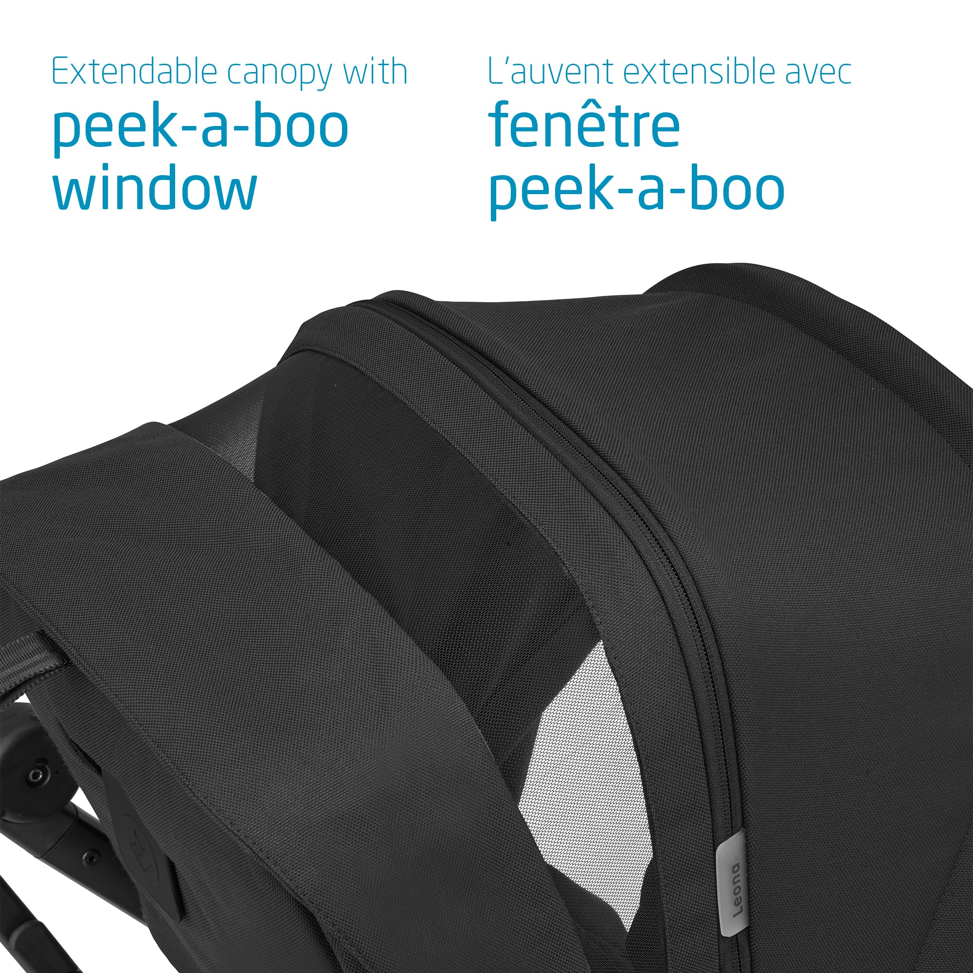 - Extendable canopy with peekaboo window gives your baby shade and comfort when needed