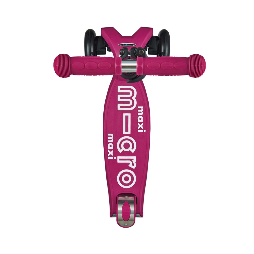 But that’s not all! This new version has a maximum rider weight of 70 kg! MICRO branded rubberized details on the deck give feet extra grip when scooting while the anodized finish of the steering column gives the Maxi MICRO Folding Deluxe Kickboard an extra luxe look.