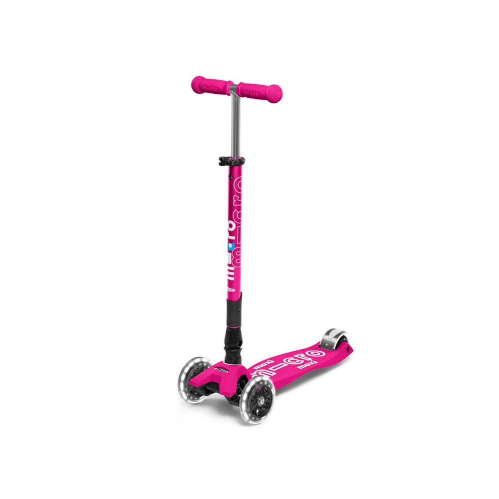 This Maxi Micro from the Deluxe family scores points with two extra features: Firstly, the intuitive folding mechanism ensures that the kickboard can be folded with a simple movement of the hand and stored anywhere. Whether in the boot, under the chair at school or in the locker - there is always room for the Maxi Micro Deluxe Foldable LED. Secondly, the sparkling LED wheels make sure that you can see the kids from a distance, even in the dark. The light is generated by a dynamo mechanism. Thanks to the inductive charging process, no batteries are needed. Furthermore, ABEC 9 ball bearings guarantee highest precision and durability. The illuminated wheels not only look cool but also provide more safety.
