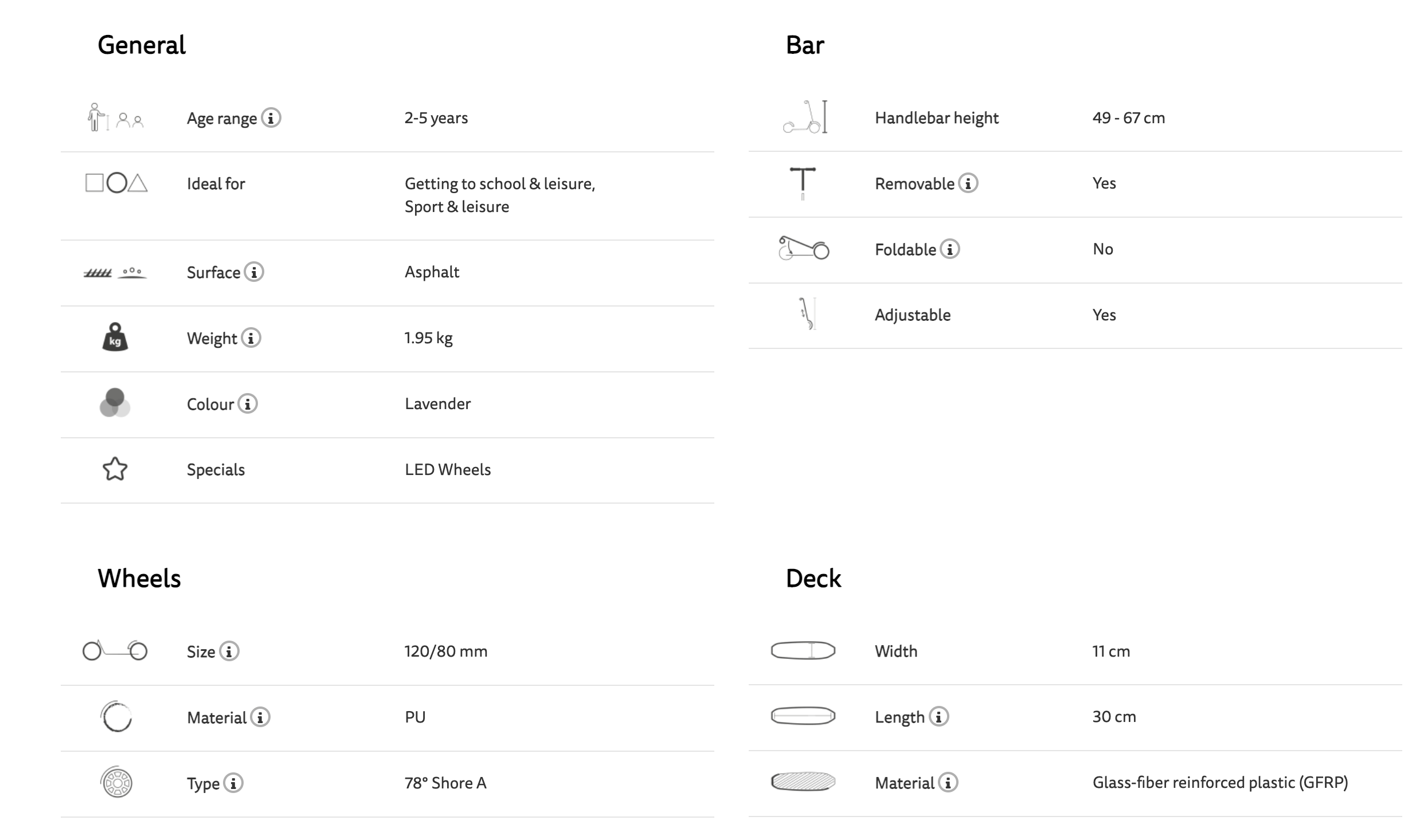 This Micro Scooter glows with motion-powered LED wheels generated through dynamo mechanics. The wheels’ dazzling illumination not only makes riding your scooter more fun, it also enhances your visibility in the dark. In contrast to the classic Mini Micro, the Deluxe version has a height-adjustable handlebar, which is equipped with a safety system for children. However, parents can still easily remove the handlebar to stow the scooter under the stroller or in the trunk. The non-slip silicone footboard provides additional support and a safe ride. Thanks to the patented steering mechanism, this unique toy promotes not only movement but also balance and motor skills of the little ones. It was developed in cooperation with medical specialists especially for pre-school children. With the large selection of colours, every child will find their new favourite scooter!