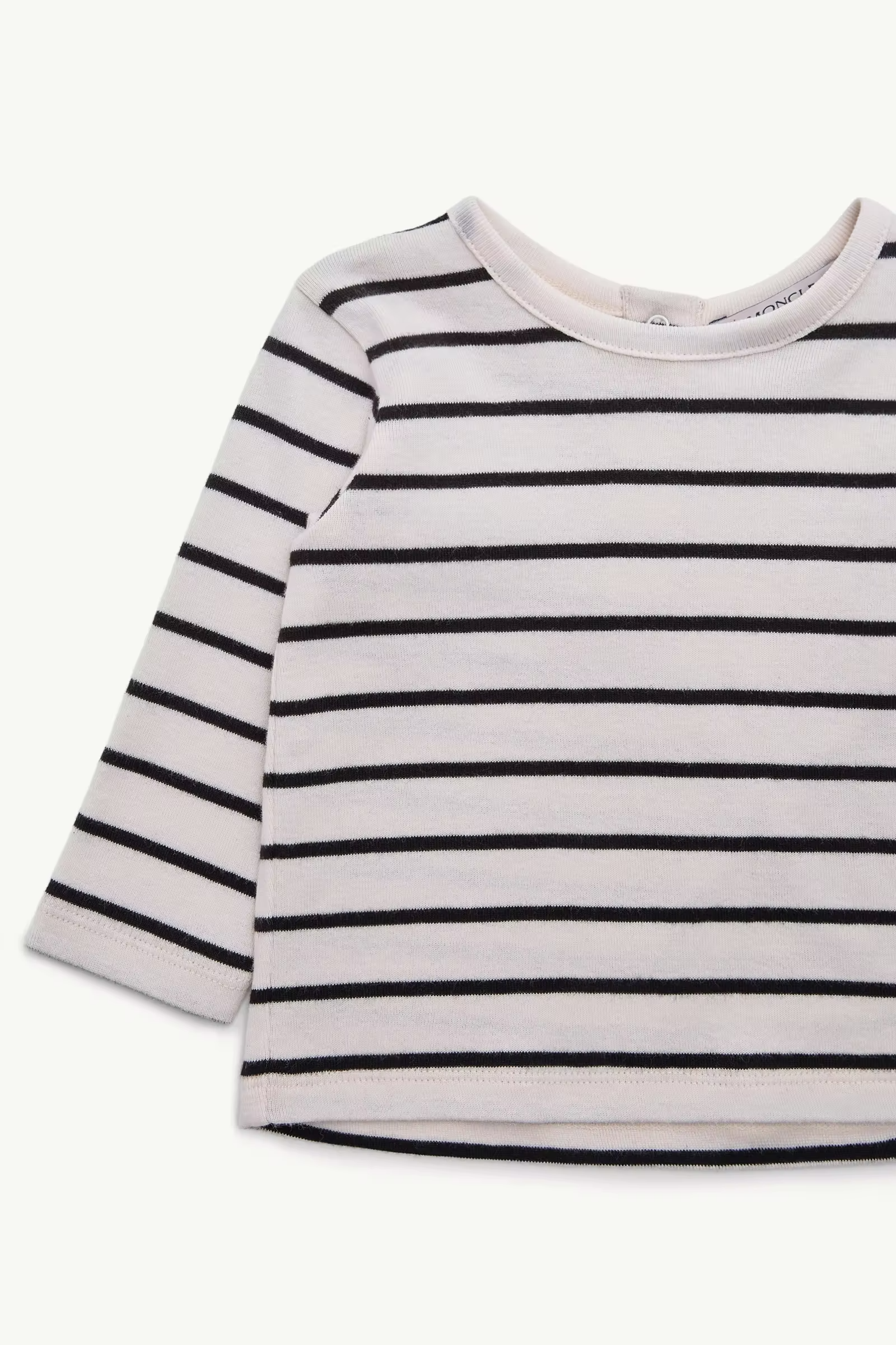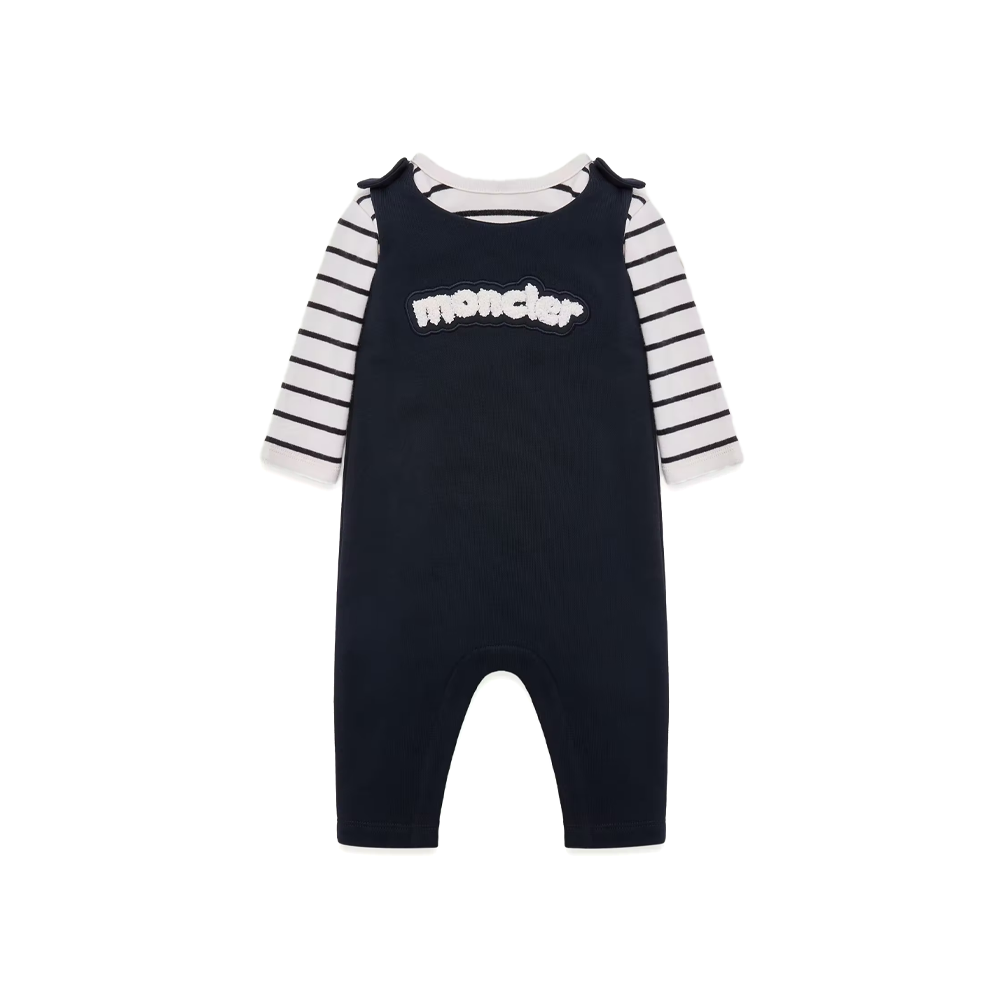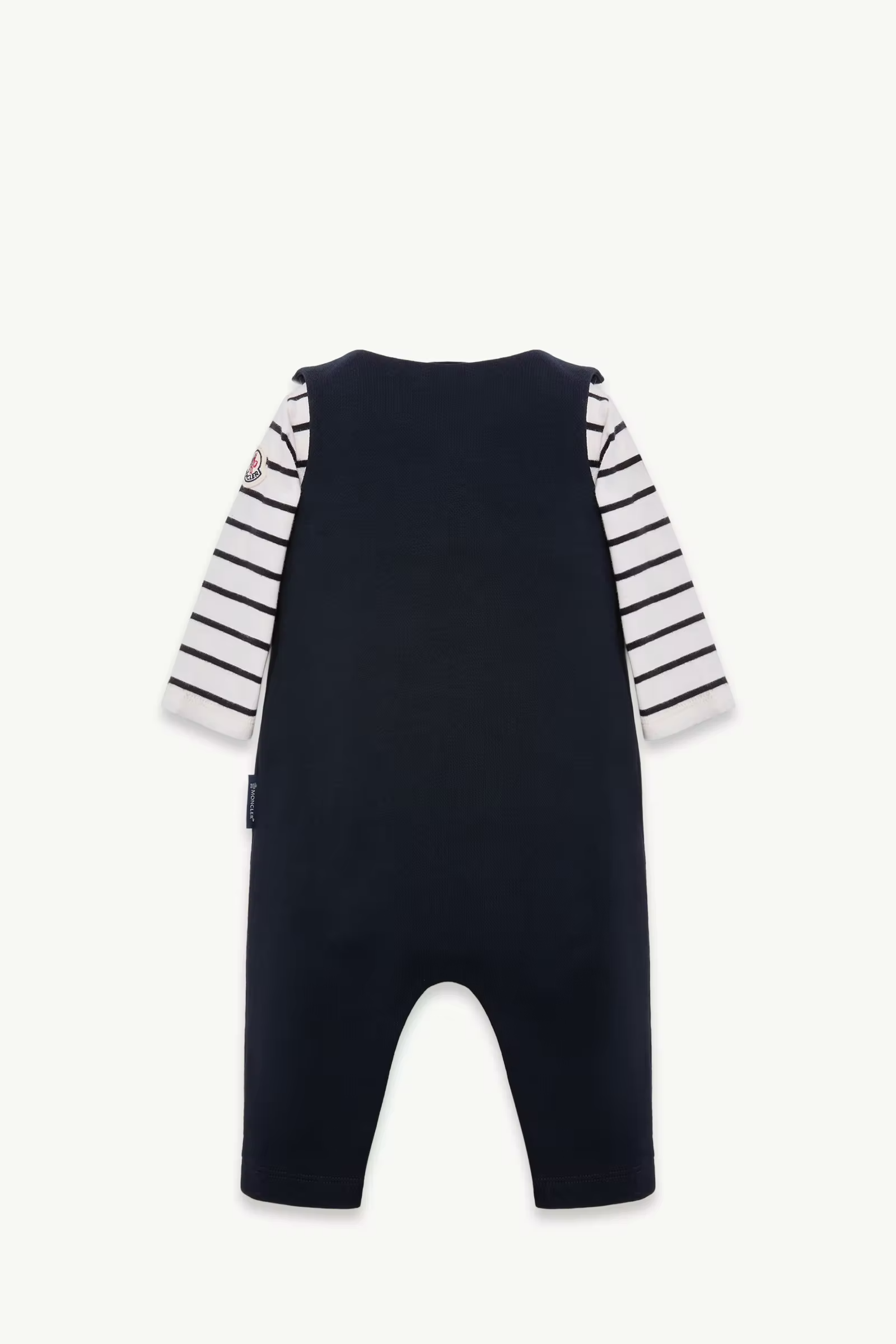 A cozy addition to your baby’s wardrobe, this set is designed for lasting ease throughout the day. The striped t-shirt is made from cotton interlock, while the plush cotton fleece romper provides gentle warmth. A textured embroidered logo adds a sweet finishing touch.Features