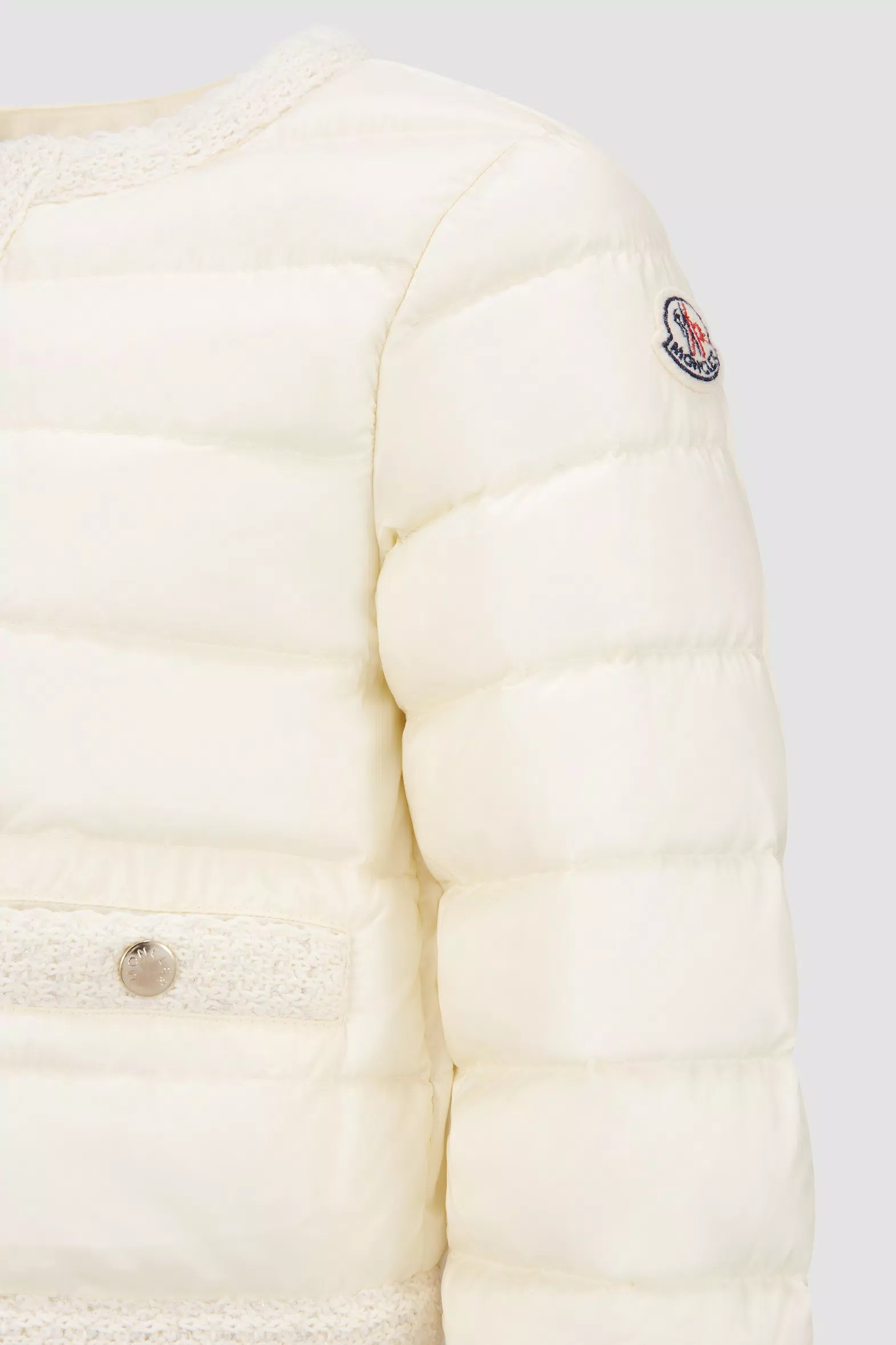 A light warmer, the Dafina down jacket is crafted from longue saison, a water-repellent nylon fabric that provides warmth while maintaining a light weight. The short puffer gilet is lightly cropped and has a crew neckline.- Crafted from recycled longue saison