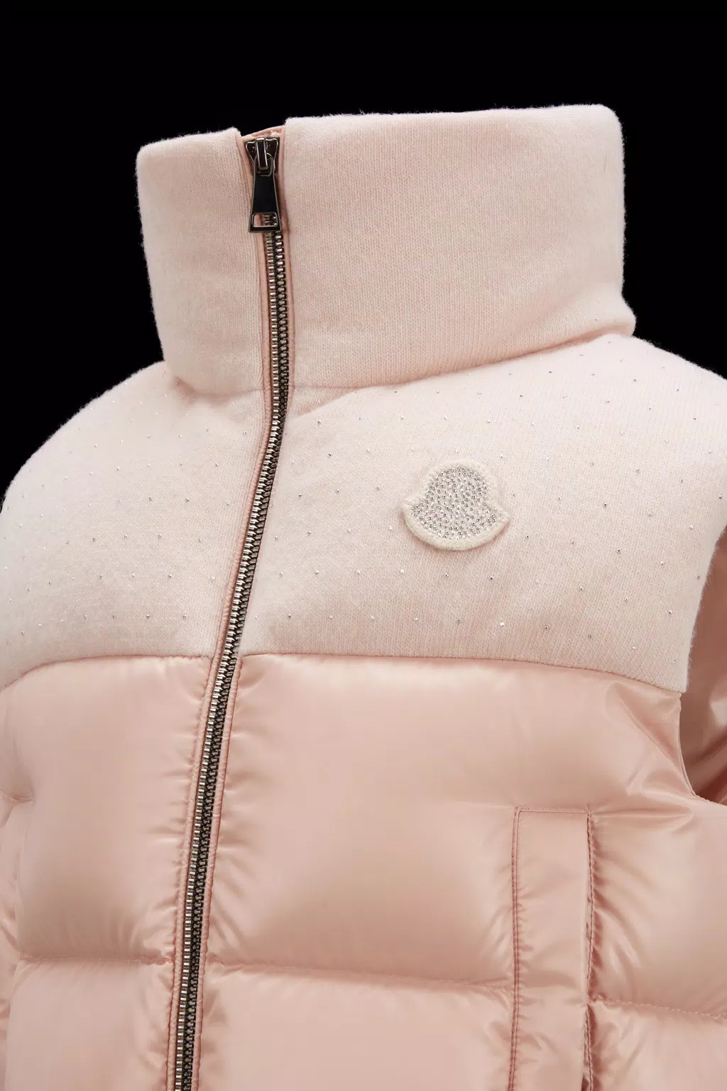 Fit for every day and for special occasions, the Suzan is a nylon laqué down gilet embellished with a wool yoke and collar. The plush puffer vert is embellished with crystal studs on the yoke.