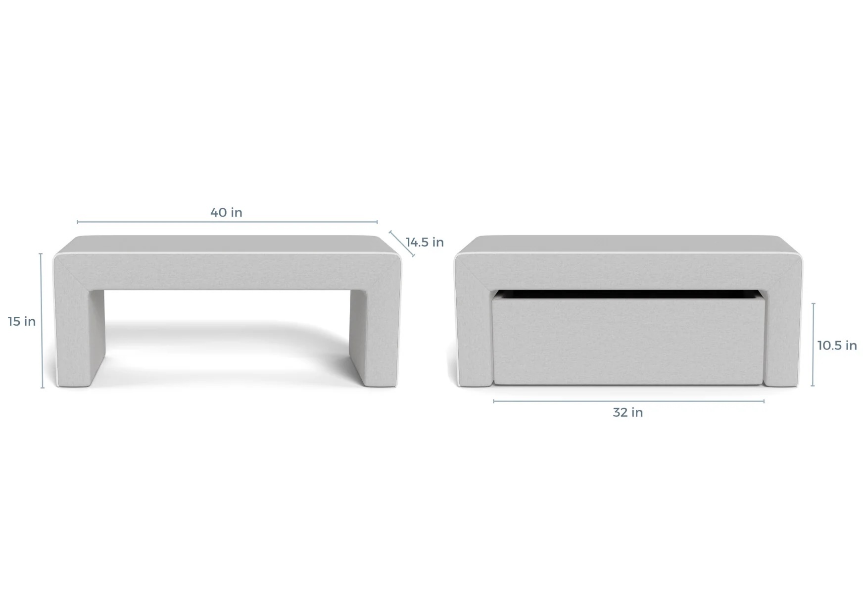 Boca Bench Height: 15" Width: 40" Length: 14.5" Boca Bench Storage Height: 10.5" Width: 32" Customize Your Monte Bed