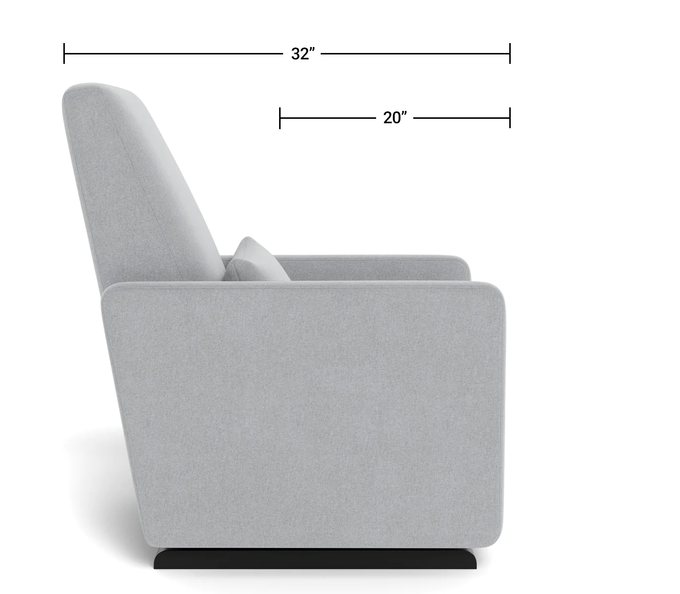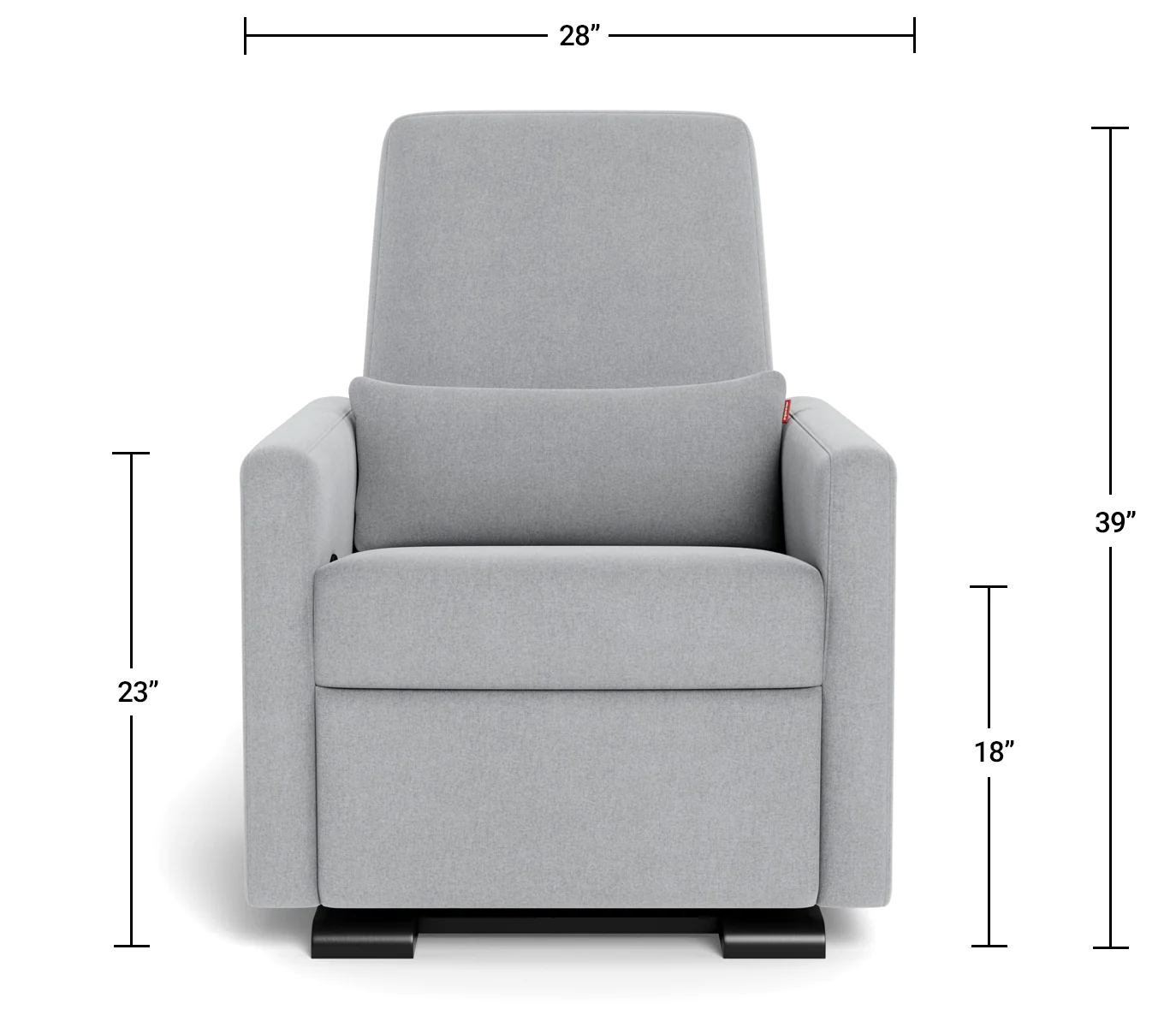 Overall Height: 39" Overall Width: 28" Overall Stationary Depth: 32" Seat Height: 18" Seat Width: 21" Seat Depth: 20" Back Height (from top of seat to top of chair): 27" Arm Height (from floor): 23" In Full Recline: 64" Distance from wall needed for glide/recline: 12"- 14" Product Weight: 105 lbs. Box Size: 30" L x 31" W x 40" H Boxed Weight: 115 lbs.