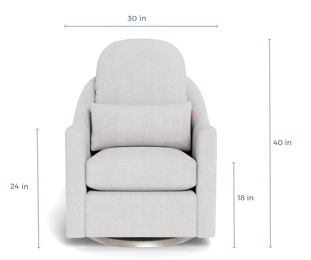 Our new Nessa glider has all the comfy-cozy feels that you will sink right into. Its perfectly curved silhouette offers softer lines and a serene presence. With a rounded back, removable plush seat and back cushions, and gently sloped arms, our Nessa is sure to bring comfort and calm.