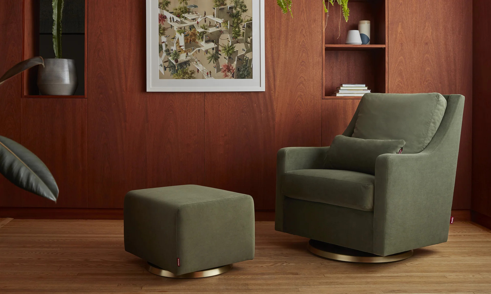 Our Vera gliding ottoman perfectly matches our Vera Glider. Put your feet up and relax!