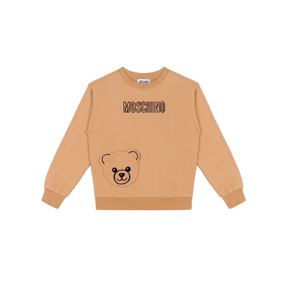 Moschino reconceptualise everyday wear into new, exciting frameworks. This unisex brown sweatshirt features a teddy Bear-shaped pocket and iconic embroidered logo on the front.