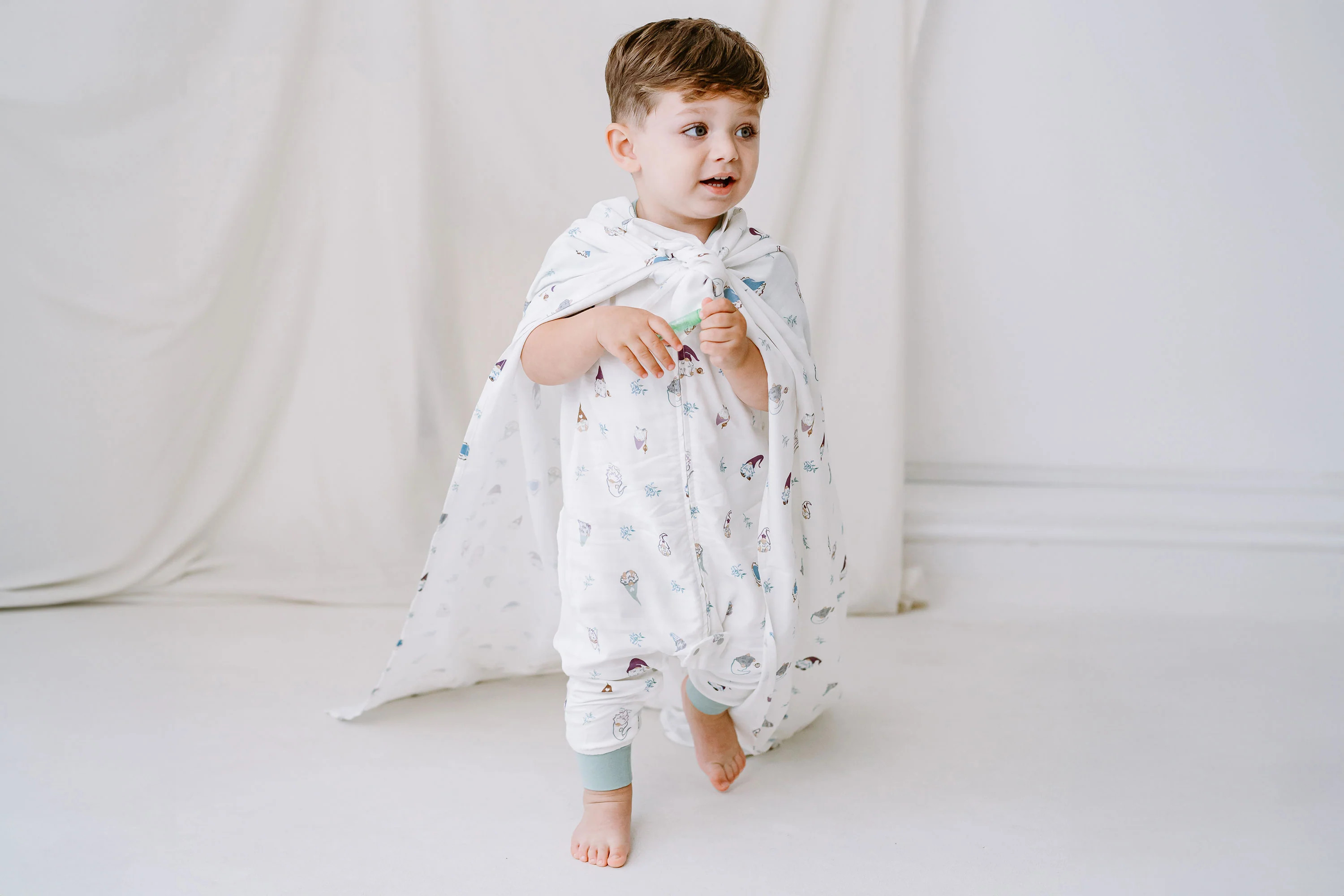Give your little love a cute, safe, and comfortable wearable blanket while they doze peacefully. Our Short Sleeve Footed Sleep Bags are designed to keep your bubs cozy during naps and at night. This lightweight footed sleep bag is perfect for little adventurers who love roaming and exploring but aren't quite ready for a big kid blanket. Our bamboo and pima cotton blend is featherlight and breathable—ideal for keeping your little love cool and comfortable on warmer evenings. Designed with stretchy side panels for added movement, your mini mover will stay cozy and covered all night long.