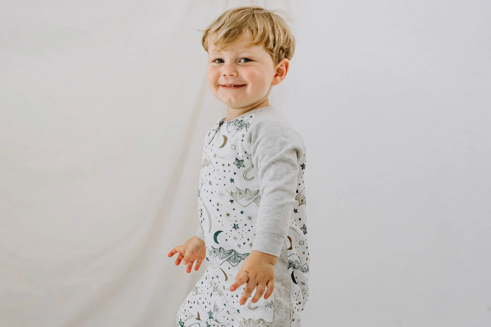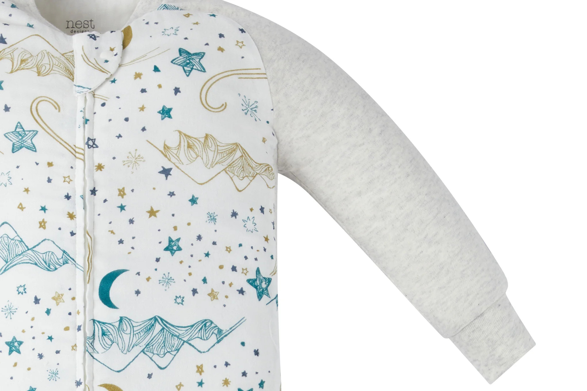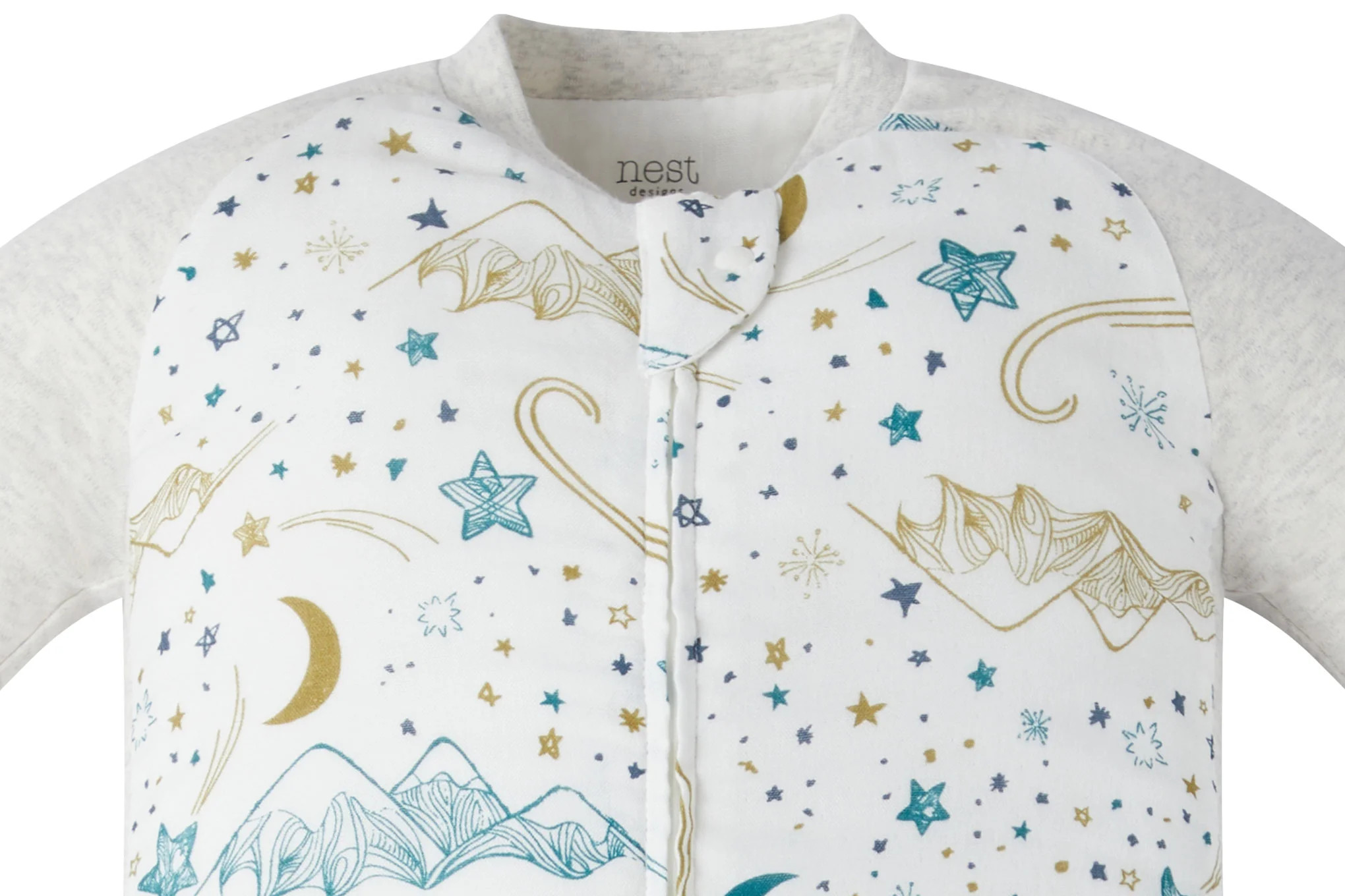 Meet one of our 10th Anniversary Greatest Hits - a re-release of our long sleeve footed sleep bag (previously called sleep suits) in our Stars White print. Originally released as part of our SS19 collection, this print features a dreamy mountain backdrop, twinkling stars, and shining crescent moon - a print worth swooning over.