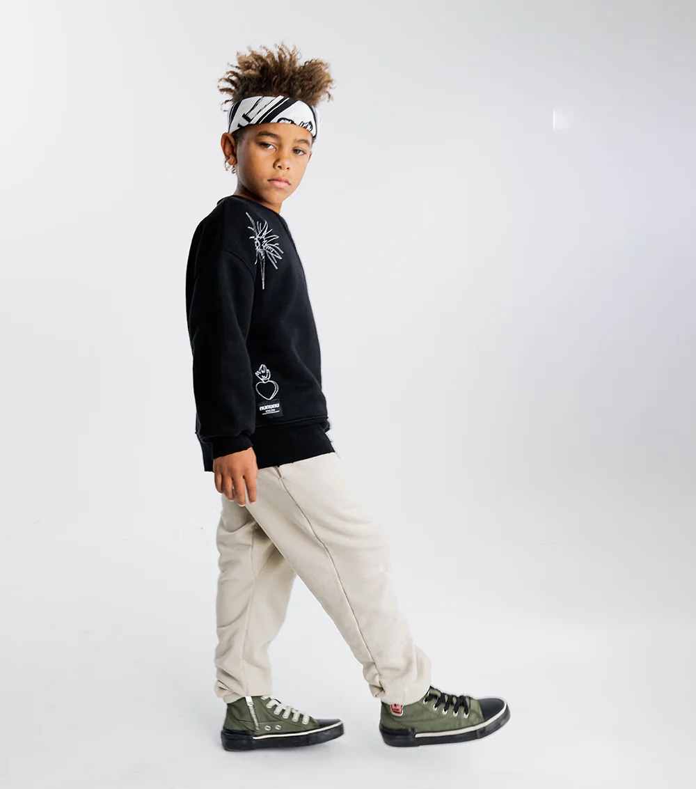 The ink on these gender neutral natural sweatpants isn’t the only thing that’s fresh. While they may look too comfy to be real, you better believe it. You know we’re all about that crazy cozy french terry. And with the subtle and stylish print, it represents everything we love about the tatted arts—complete with crossbones & a fiery heart that’s just about ready to implode—because that’s how we do things around here.