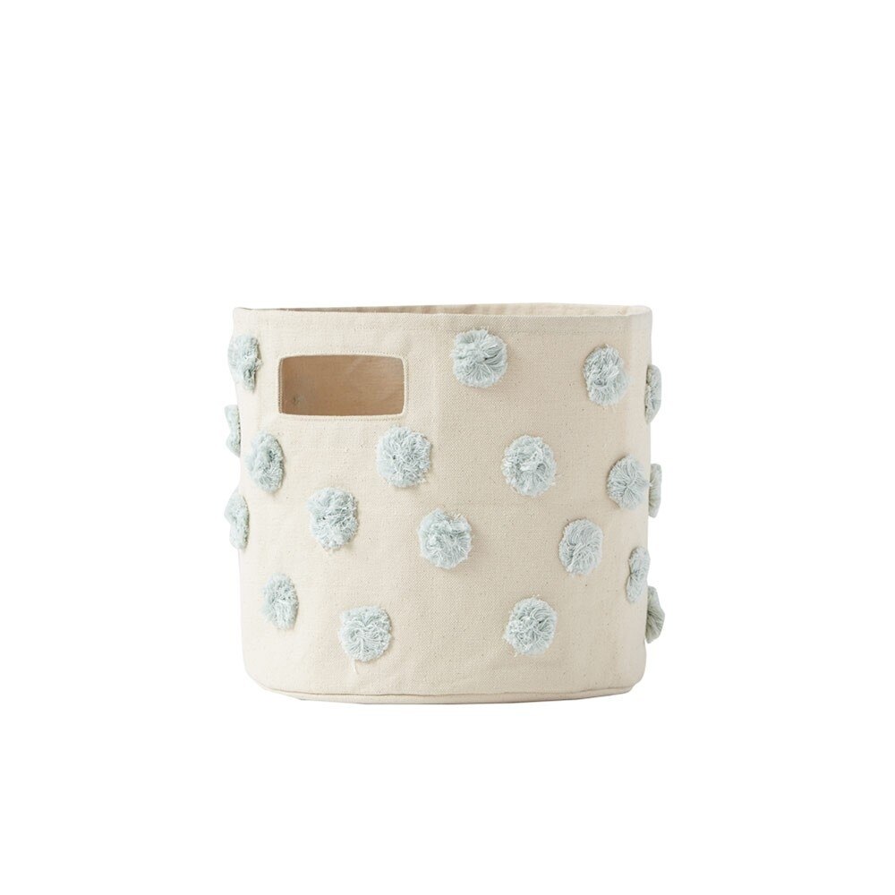 Declutter and update your decor with this durable cotton-canvas storage Pint that is perfect for diapers, creams and other small stuff! With each Pom Pom sewn by hand, it will add a pop of playfulness to any room.