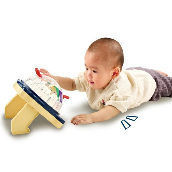 The People Sparkle! Spin! Dome is designed to capture your baby’s attention with light-reflecting surfaces and easy spinning motion. As babies touch the dome, it gently spins, creating sparkling visual effects that encourage repeated reaching and interaction. Perfect for early development, it supports visual tracking, curiosity, and motor skills. The adjustable angle allows the toy to grow with your baby, offering engaging play from 4 months and beyond.