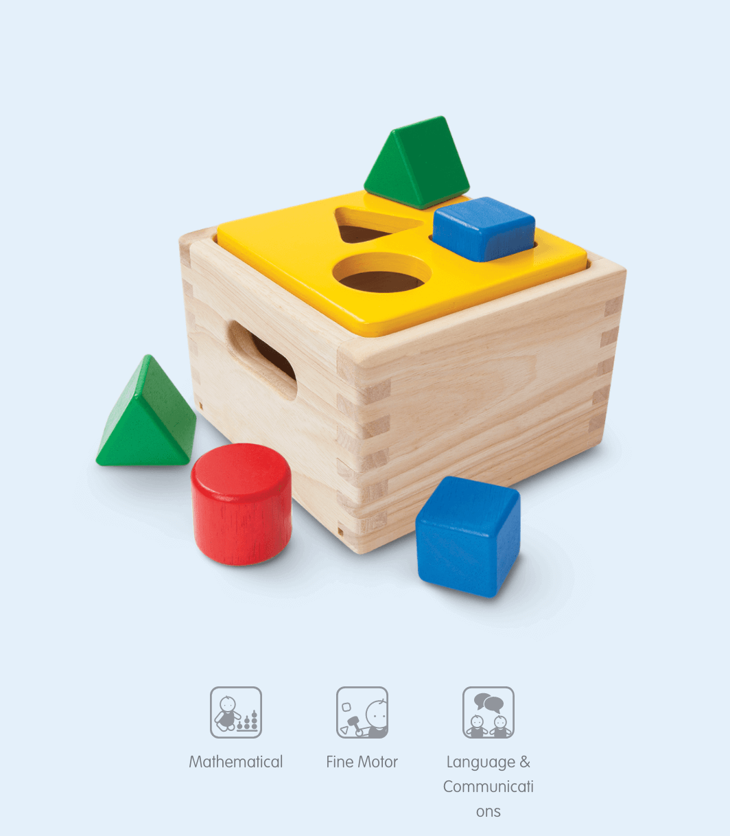 EDUCATIONAL PLAY: Because this playset involves shapes colors sorting and counting it can be paired with a variety of other educational activities at home and in the classroom! Encourage little ones to develop their ability to count differentiate between various shapes and colors and utilize their fine motor skills to properly sort the wooden pieces. SUPPORTS DEVELOPMENT: Learn to differentiate between shapes and colors by recognizing which shape belongs where in the wooden puzzle box. Children will develop cognitively as they use problem solving and the trial-and-error process to sort the shapes successfully. Fine motor skills and hand-eye coordination are also developed with play. SUSTAINABLY-MADE: Crafted using sustainable rubberwood and stained with non-toxic water-based dyes the Shape & Sort It Out playset is free from harmful chemicals and sharp edges so children are optimally safe during free play. The set includes 3 colored wooden shapes and a puzzle box punctured for shape placement. Suitable for children 12 months and older.Product Dimensions15.3x15.3x10.4 cm6.02x6.02x4.09 inchProduct Weight0.84 kg1.852 lbs - Reviews