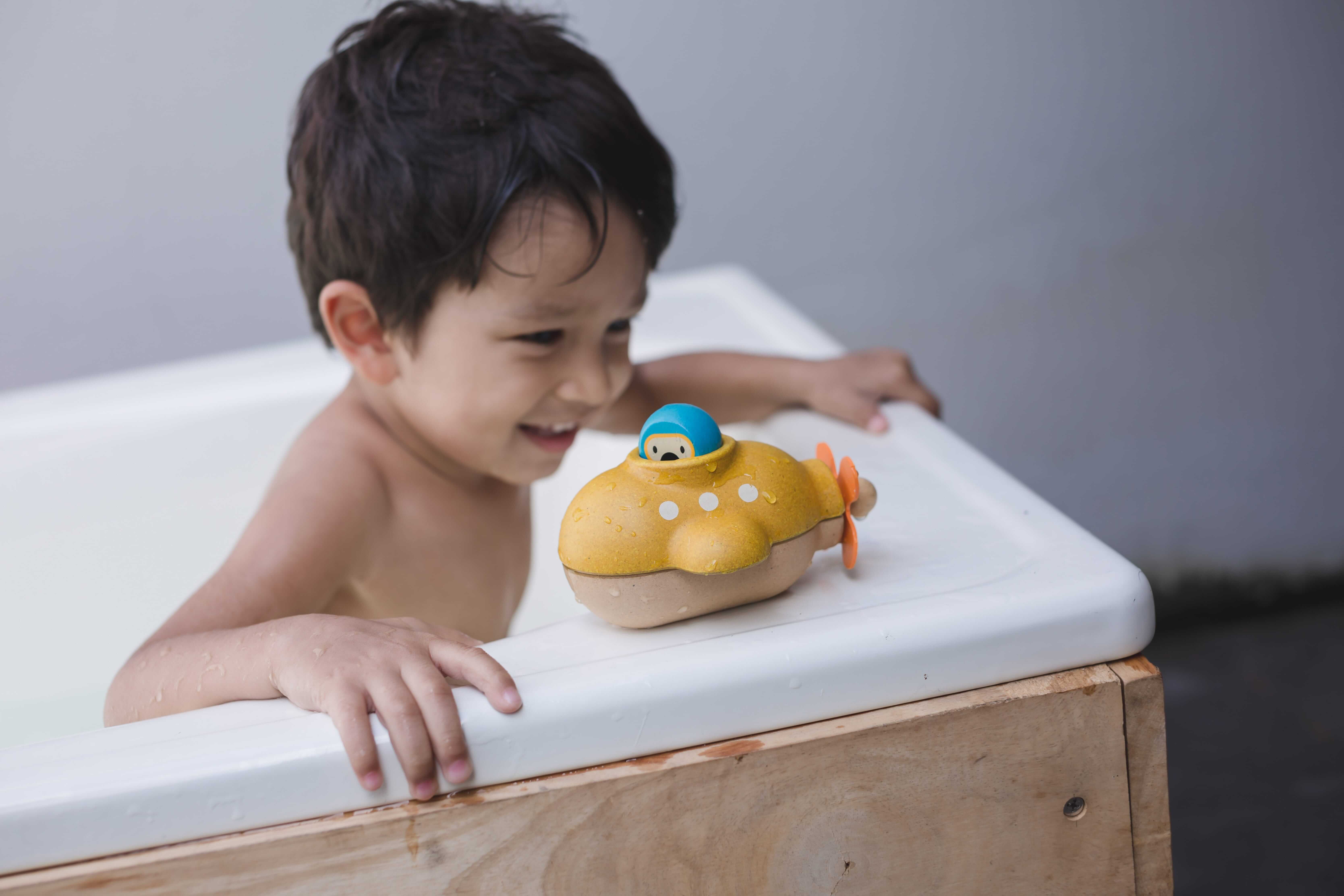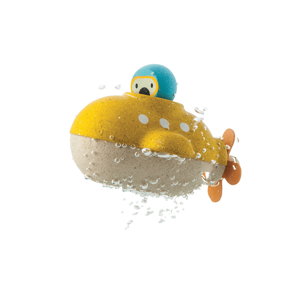 WATER-PLAY: Transform bathtime into an underwater excursion with the Submarine! Children can enjoy whoosing the toy through the tub and exploring the depths of the underwater world. Made from sustainable PlanWood(TM) the toy is suited for water play and wet conditions. Don't forget to dry the toy off and store in a safe place after bathtime! SUPPORTS DEVELOPMENT: During play children improve their hand-eye coordination and fine motor skills. Sensory exploration is also inspired as little ones play with the Submarine in water sand or other textured conditions. Furthermore the toy triggers the imagination as underwater stories and scenarios are created! SUSTAINABLY-MADE: Crafted with PlanWood(TM) a PlanToys material made from surplus sawdust that results in a more flexible water-resistant wood the toy is safe for wet conditions and is stained with non-toxic water-based dyes. Suitable for children 12 months and older.
