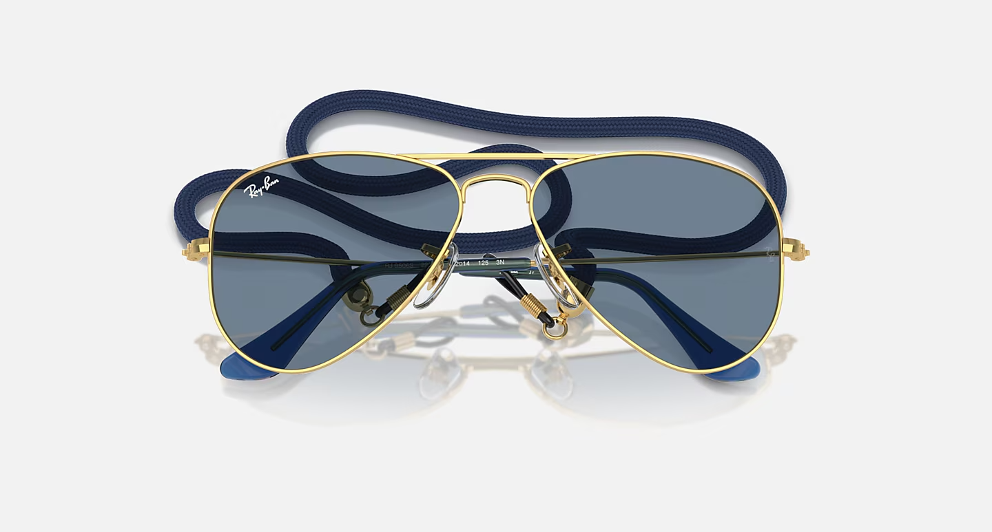 Ray-Ban Aviator Kids sunglasses are perfect for children who want to follow in their parents' footsteps. The gold metal frame and pilot shape make these sunglasses stylish and timeless, just like the originals. The light blue lenses provide a unique color finish that you won't find anywhere else.