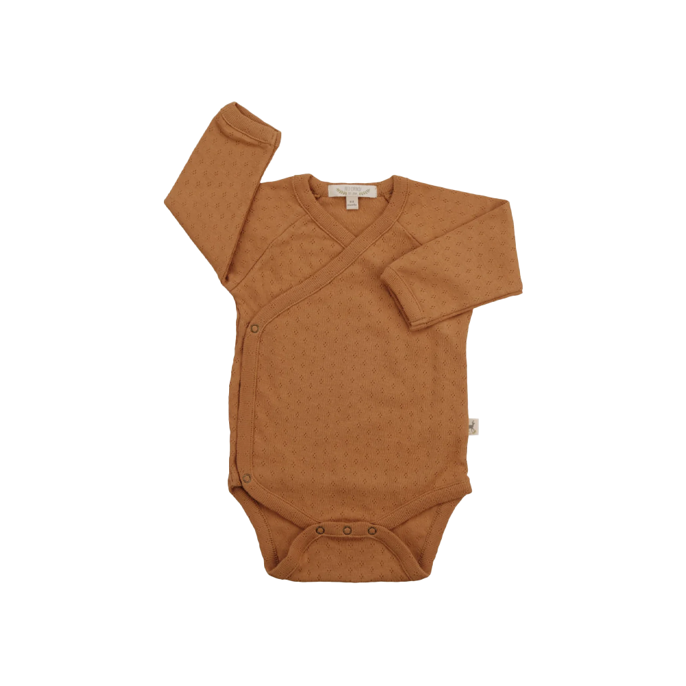 Our Baby Kimono Onesie, made from 100% Organic Pima Cotton, features a stylish kimono-style crossover opening secured with snap buttons. Additional snap buttons at the bottom make diapering a breeze. Crafted from our signature super-soft and durable fabric, it offers both comfort and convenience.
