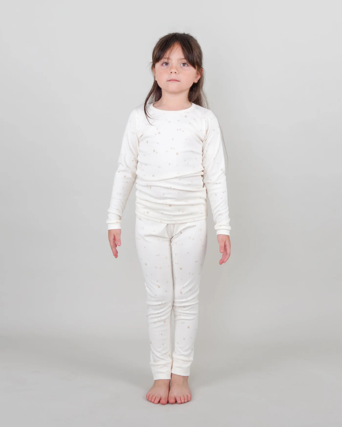 Our Pajama, crafted from 100% Organic Pima Cotton, includes a long-sleeve top and snug-fit leggings. Made from our signature super soft and durable fabric, this pajama provides ultimate comfort for a restful night's sleep.