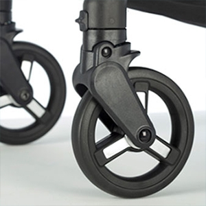 - The lockable, swivel wheels at the front also feature a dynamic spring suspension system to create a smooth ride.