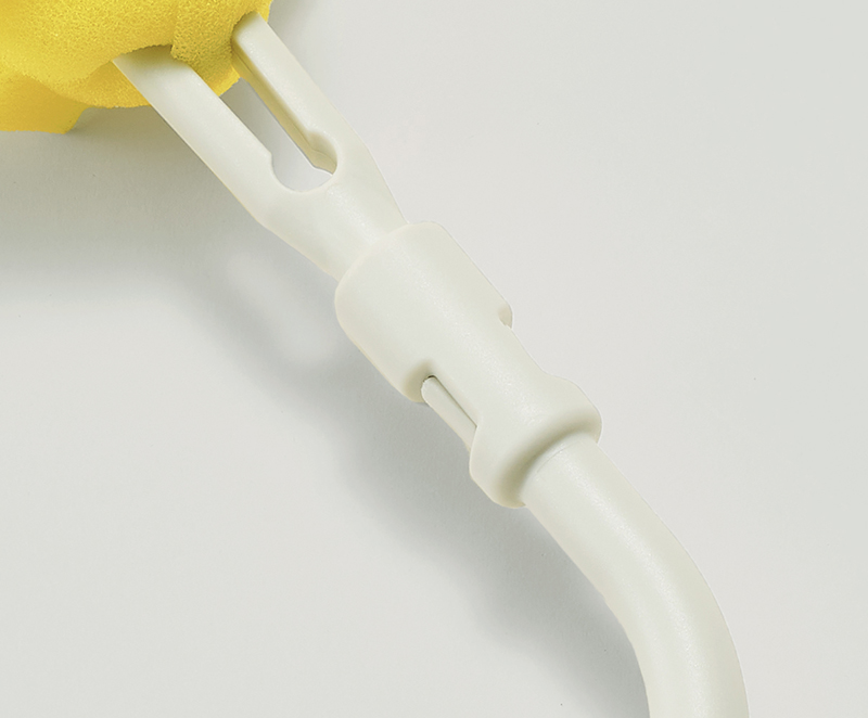 - Sponge head features wave-cut edges to easily reach curved surfaces.