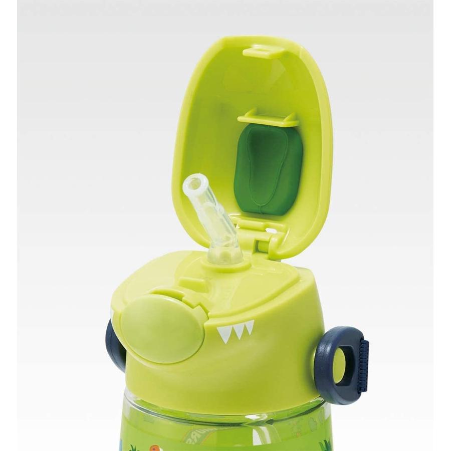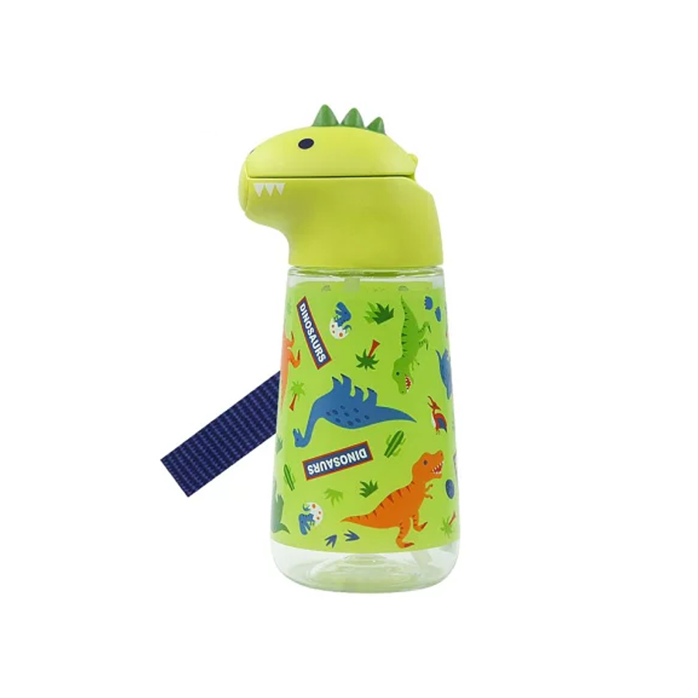 This plastic water bottle features a character-shaped cap and a push-type lid for easy opening. Its design allows you to see the contents inside. Handle with care to avoid damage from strong impacts.