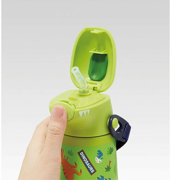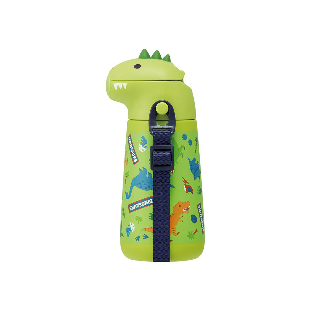 The Skater Die-Cut Stainless Steel Bottle 370ml – Dinosaur combines fun character design with everyday practicality. Its adorable die-cut cap shaped like a dinosaur adds charm while keeping your child’s drink refreshingly cool. Designed exclusively for cold beverages, the vacuum-insulated double-wall construction maintains temperature for up to 6 hours.