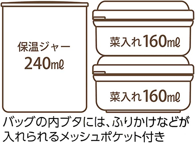 Lunch box with insulation jar. Lunch bag is compact size and easy to carry. With mesh pocket on lid back.