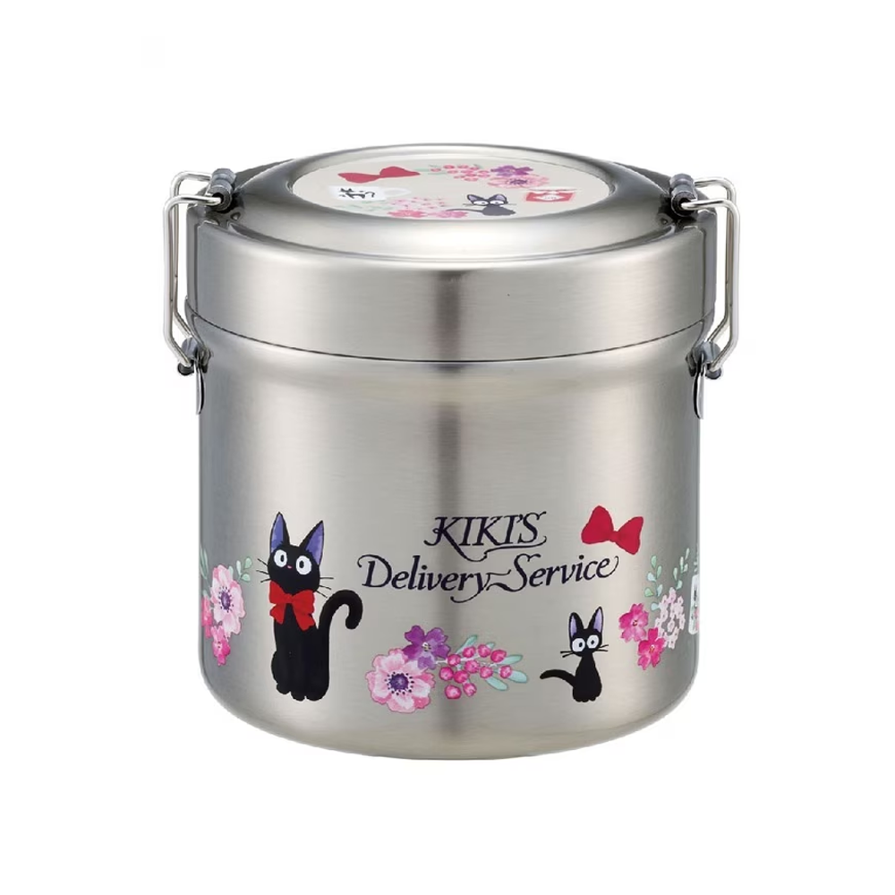 The Skater Two Level Vacuum Stainless Steel Lunch Box (800ml) in Pikachu Black features a café-style bowl for warm rice or noodles, with a leak-proof inner container and microwave-safe lid.