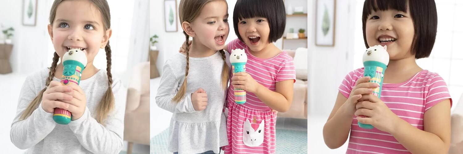 Little ones will love to sing and dance like a rock star with this “llamazing” microphone! Not only does it amplify the voice just like a real microphone, but kids can sing along to three classic songs—Old MacDonald, Row, Row, Row Your Boat and Twinkle, Twinkle Little Star—for their moment in the spotlight.Features