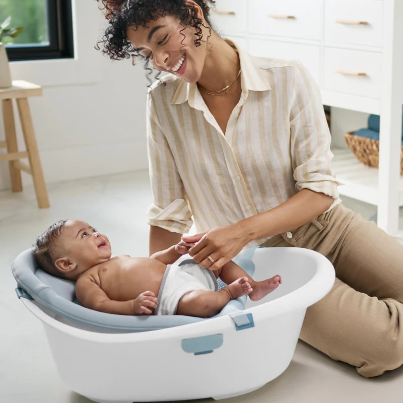 Designed to grow with baby in four stages—from infant to toddler—the only tub parents need! Filled to the brim with innovative details for baby’s comfort, the Skip Hop Wave 4-in-1 Baby Tub includes a supportive sling that can be used in two positions to help make infant bathing easier and less stressful for both parents and baby.