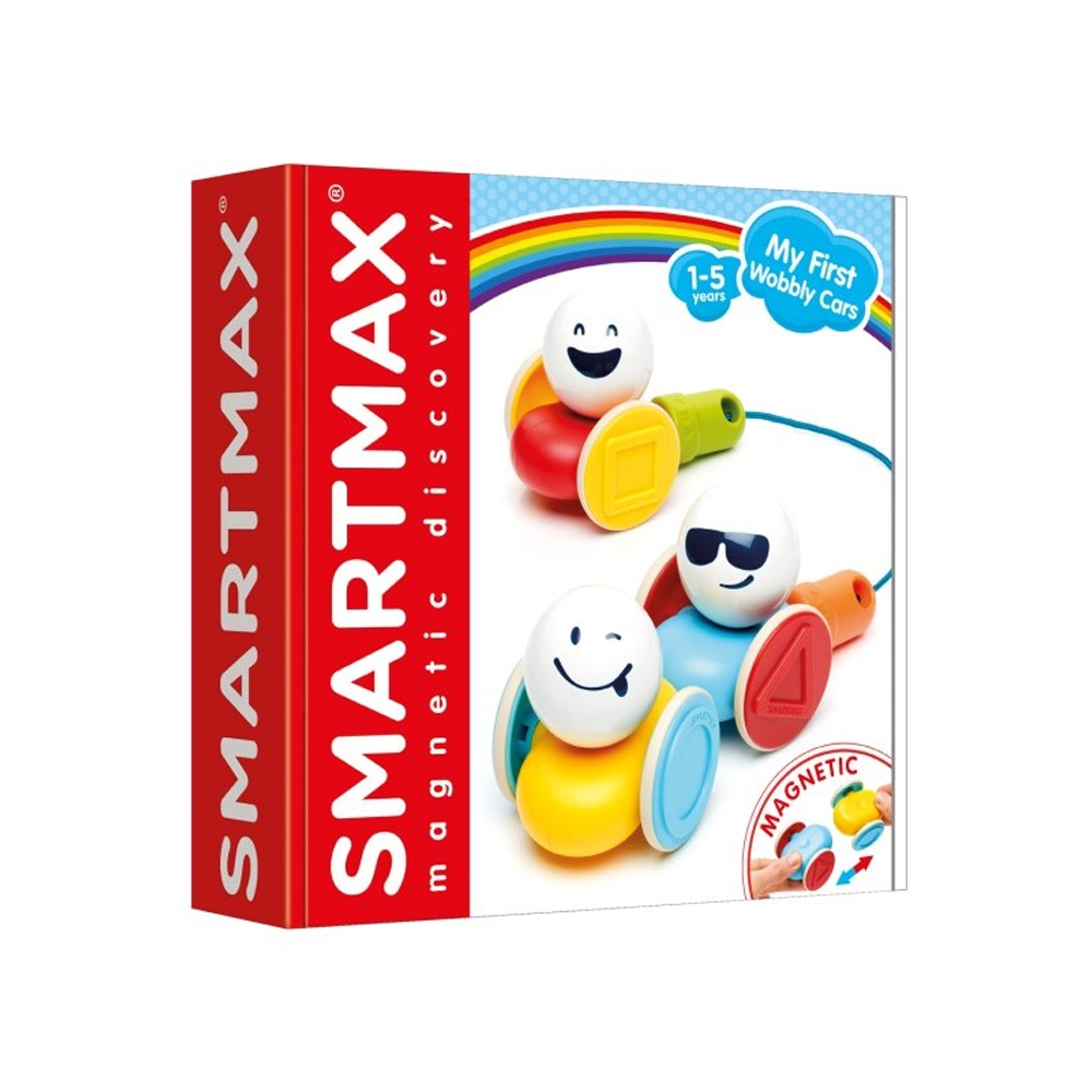Get your Wobbly Cars Moving! Go on an exciting, wobbly adventure with these magnetic fun-moving cars! Create your own Wobbly train and pull it along. Mix your cars and metal balls to create different wobbly combinations or use the pull rope as a fishing rod.