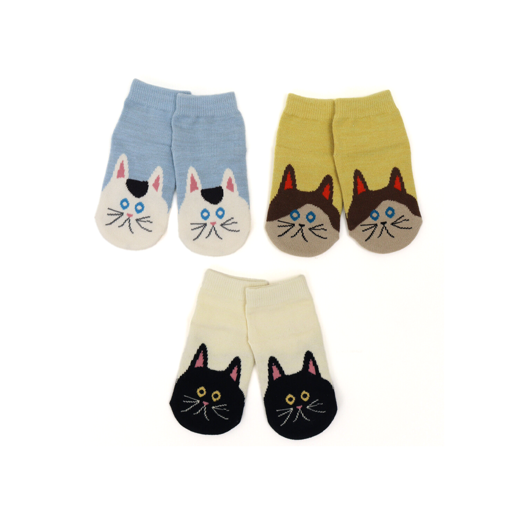 These socks are purr-fectly cute! This 3-pack of baby ankle socks features round-faced cat designs on the toes, with an extra adorable surprise—little cat heads peeking out on the soles too. Designed for comfort and irresistible style, they’re sure to delight cat lovers of all ages.