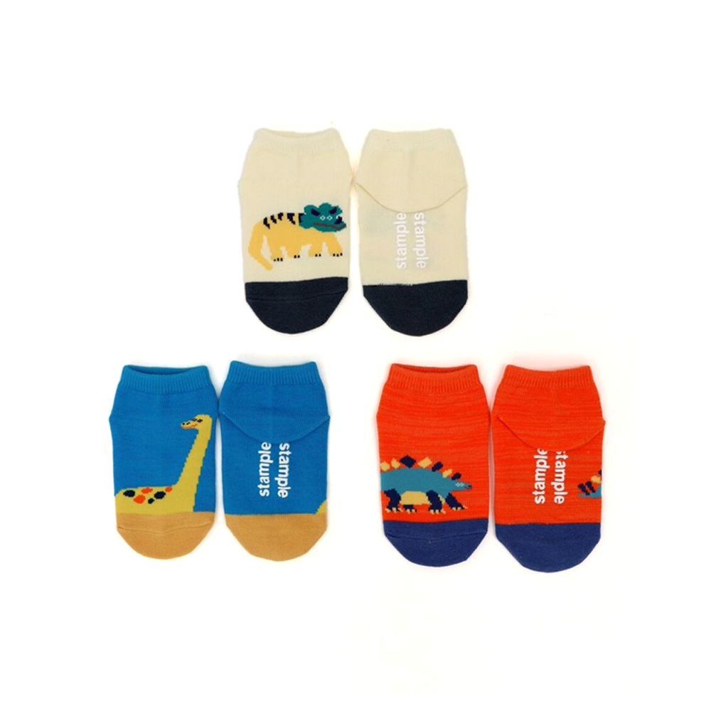 - 3 pairs of ankle socks with loose and cute dinosaur designs